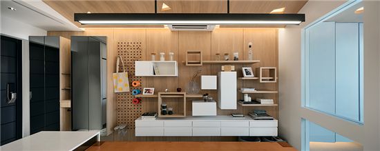 唐老师还分享了不久前参加的《梦想改造家》节目,为一家四口改造38平米的案例。一家四口在深圳的小蜗居,为了能让孩子健康的成长,唐老师在空间功能的设计上花了很多的心思,利用了许多空间储存的设计和光影的效果,来达到这四口之家对生活的各种需求。