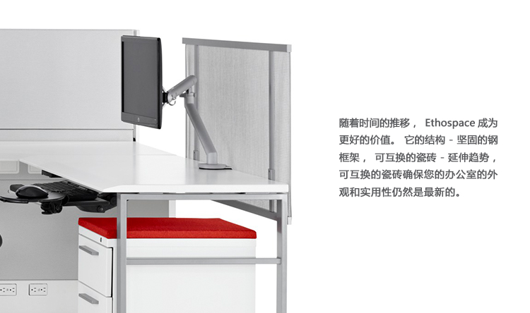 Ethospace的天才在于它坚固的钢框架和可互换的瓷砖的结合。几十个瓷砖选项让您定义和重新定义您的工作场所的外观和性能,而钢框架提供了充足的电力和数据容量,并支持悬挂存储和工作表面。自第一次采用以来,欧洲空间系统定期更新和扩展,使各组织具有灵活性和持久性,以满足不断变化的工作需求。