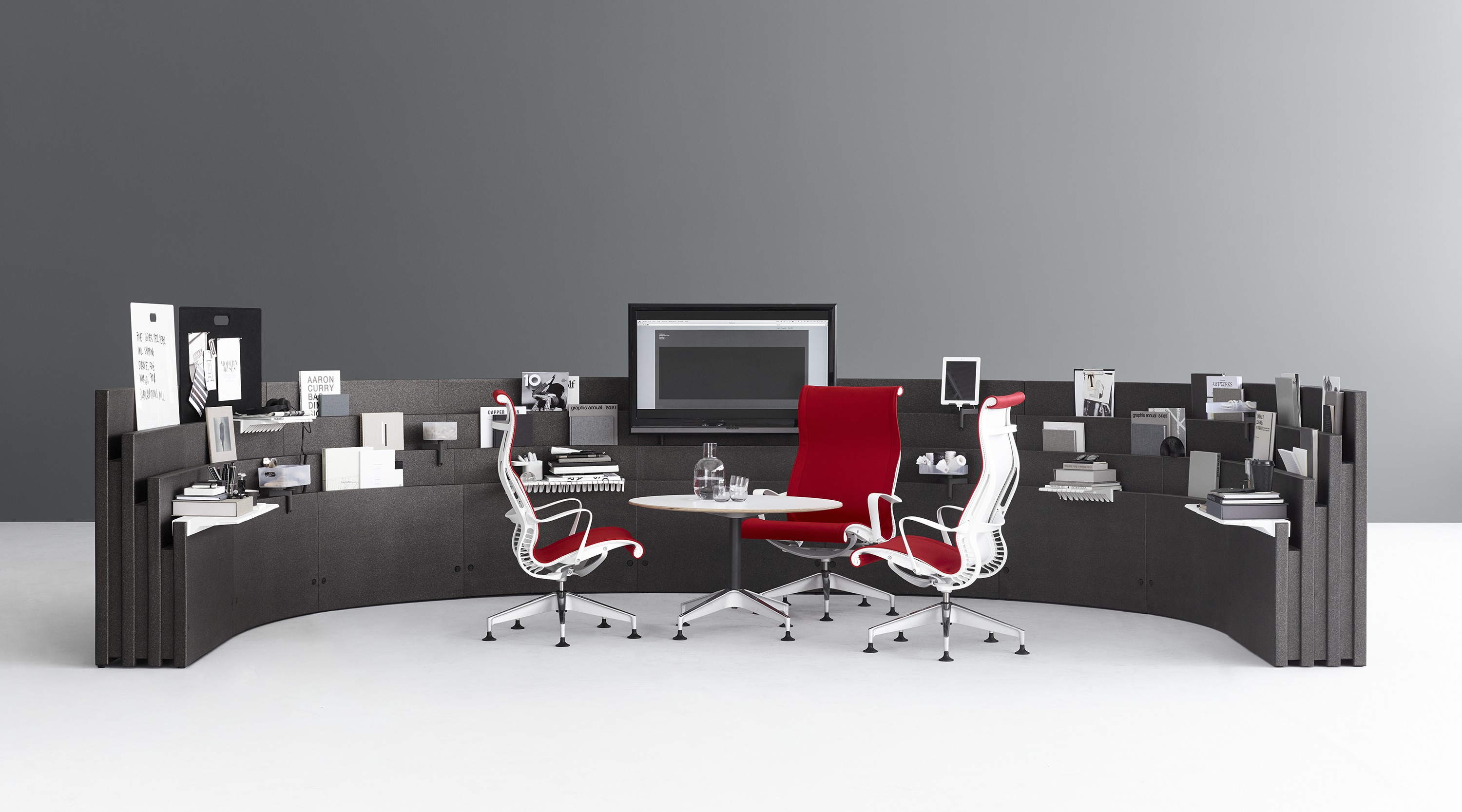 Herman Miller 公司认为设计是企业经济的一个有机组成部分,并与世界著名的设计师合作,拥有自己的设计师队伍。其中Gilbert Rohde, George Nelson, Charles &Ray Eames, Alexander Girard, Isamu Noguchi, 就是Herman Miller公司的设计先驱,他们使得Herman Miler 改变传统的家具设计路径。 而在20世纪60年代,经过8年的研究,Robert Propst(罗伯特.普罗佩斯特)创立世界第一个开放式的办公家具系统"行动式办公室"("Action Office")。也就是今天被广泛采用的开放式办公屏风系统。 1976年Herman Miller 生产出Ergon椅子,将人体工程学运用到办公椅子的设计中;1984年,Equa椅子进一步将人体工学应用到办公椅子设计里;1994年,Herman Miller 在椅子设计得到一个新的突破---革新地设计出Aeron 网椅,并获得了欧洲家具工业研究协会(FIRA)颁发的人体工程学优秀奖,该奖是欧洲人类环境改造学的最高奖项。现在,这张Aeron椅子作为永久展品陈列在纽约现代艺术博物馆中。 在世纪转换之时,Herman Miller 的全球研究、设计队伍开发出Resolve 系统屏风,它利用几何学的原理,创造出宽敞舒适的工作环境,光线渗透性强,颜色协调,充满了生动的气氛,令工作环境,休息场所更加富于乐趣。我们相信Resolve 会给我们的用户带来更舒适的享受,支持着新型工作人员和新型的工作。而且,Resolve 也和Aeron一样,作为永久展品陈列在纽约现代艺术博物馆中。 在过去的几年间,这家公司推出的Aeron人体工学办公椅牢牢占据着地球上最舒适安全座椅的称号。如今风光多年,获奖无数的Aeron也终于迎来的继任者——经过近10年的设计,Herman Miller Embody办公椅于近日全面上市。Herman Miller也希望通过这款新品,重新定义舒服和人体工学的新高度。Herman Miller的Embody绝对是当今人体工学设计的集大成者——Aeron 的设计师 William Stumpf 一生的最后几年一直致力于推出 Embody,直到2006年去世,之后由设计师Jeff Weber继续改进。 它的问世可以说是来自于几代人的努力和千百次的科学实验。