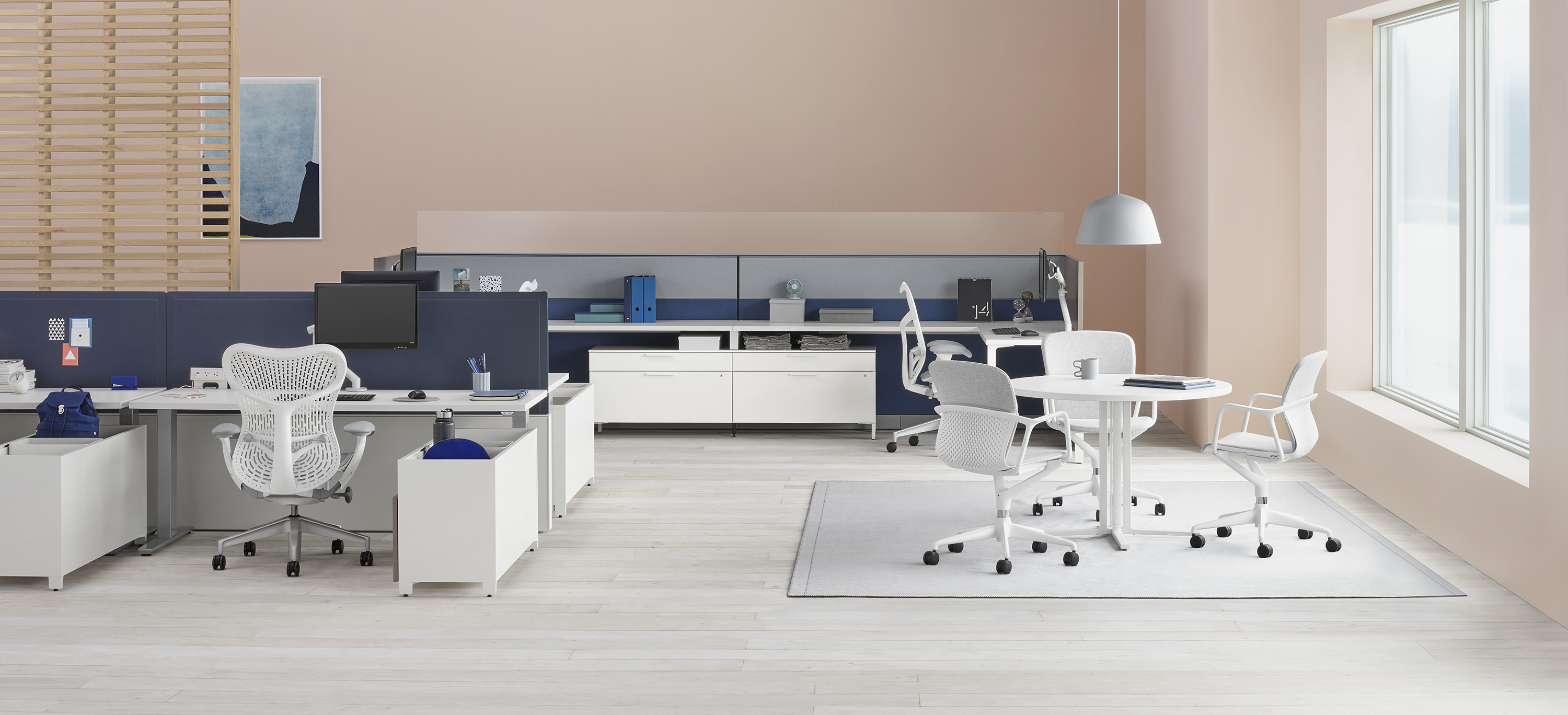 Pari是一个屏幕系列。 有些版本是独立式的,有些版本是贴在表面或框架上的,所有版本都是可粘的,并且共享无框架,薄的外形。 它们一致的细节和互补的颜色有助于美学的连续性,因为它们描绘了空间并提供了隐私。 Pari Screens与许多Herman Miller产品兼容,可在办公室环境中进行设置。 使用Pari Screens,组织可以压缩工作站并在较低的墙壁高度进行标准化,而不会牺牲员工所需的隐私,以便他们可以集中注意力,或创建个人空间的边界让他们感到舒适。