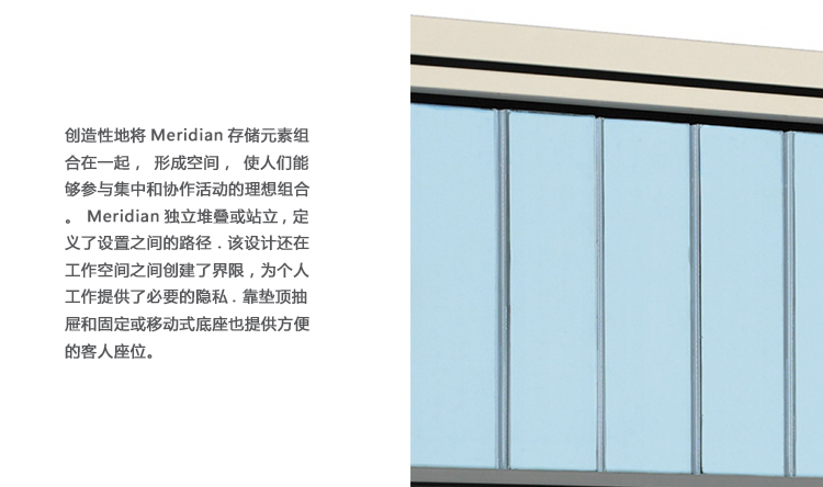 Meridian的优势在于其随着组织需求的变化而发展的能力。 它的模块化元素堆叠起来,从任何一侧打开,并且可以轻松互换,以创建个人和团体支持的空间,无论是现在还是将来。