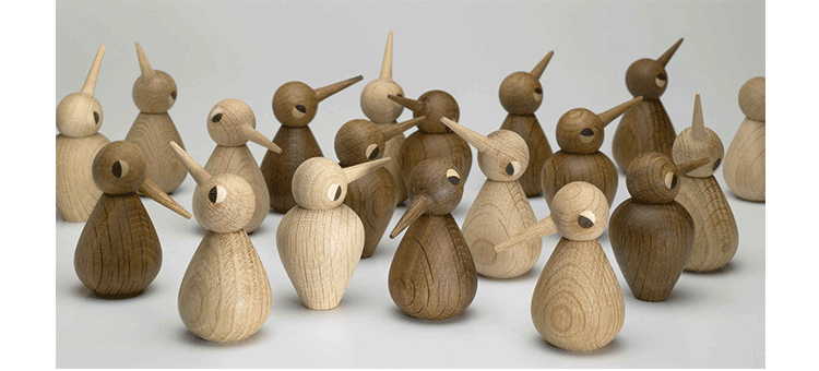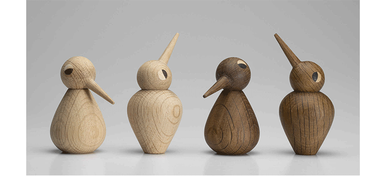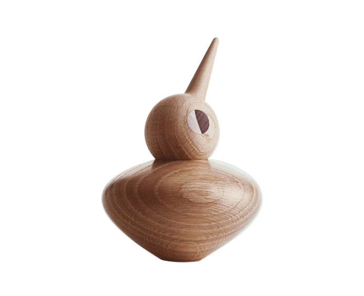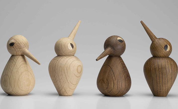 "这些优雅灵巧的鸟儿们诞生于丹麦的一个小镇,工匠们以成熟洗炼的工法,采用烟熏色及原色的橡木纯手工打造制作,整件作品没有用到任何衔接的钉子,每个环节步骤都蕴藏着精湛的工艺技巧,并细心严谨地一个步骤接一个,才能逐步将片片木材刻划成各个活灵活现,充满自由灵魂的鸟儿。由于50年代的丹麦活跃着一股「斯堪地那维亚现代主义设计」风潮,延续低调简洁的风格并大量采用自然木材与传统工艺所迸出的美丽火花,设计大师Kristian Vedel也致力其中成为见证历史的大师之一。他于1959年所设计的简洁有机线条木鸟家族系列︰有三代同堂的鸟爸、鸟妈、鸟阿公、鸟阿嬷、还有鸟宝贝,虽然当年只有鸟宝贝问世,却已经在50年代的丹麦掀起一股木工艺术品的热潮,并引起世界各地设计界与媒体的青睐报导,成为当时收藏家的最爱。 如今,Architecmade公司让整个鸟家族大团圆,重新问世登场,你我怎能再错过这次收藏的机会。这些史上表情最丰富最有灵性的木鸟作品,透过橡木独具的粗犷木斑肌理表现出鸟儿独特的羽毛纹路,并以手工磨制胡桃木眼睛再将之装入头部后仔细砂磨,成为灵魂之窗的眼珠子,因此可将头部任意的做各种角度调整,藉此表现出不同的心情,如快乐、忧伤、好奇、或警觉等。 而鸟的身体可以颠倒放置,以切换出鸟弟或鸟妹的性别。 想一探牠们活灵活现的模样吗?就让这些有灵魂的小鸟飞向你一起诉说心情故事,做个自由飞翔的美梦。"