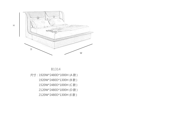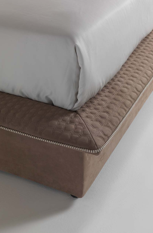 高床头和珍贵的刺绣充实简单的这张床光和现代设计的特征。