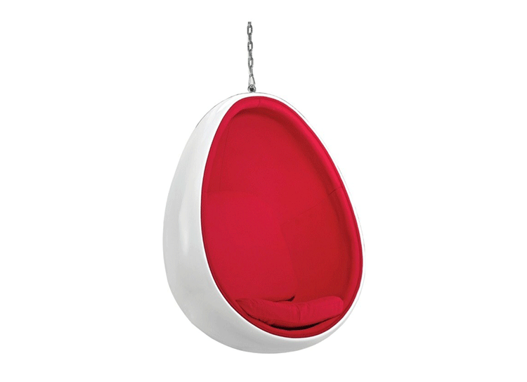 "60年代初,芬兰最大的家具企业 Asko 公司请 Aarnio 设计一种塑料椅以求改变公司多年以木材为主的传统面貌。 1962 年夏天,Aarnio 用新闻纸和浆糊作原材料,在藤编家具启发下,设计出一种适于塑料制作的面貌全新的坐具造型, 1963 年至 1965 年间,Aarnio 用合成材料反复试制他的新型设计,终于推出名为“球体”的看似航天舱的坐椅,并且在 1966年科隆家具博览会上一夜成名。从圆形的球状体中挖出一部分或使它变平,可以形成一个独立的单元座椅,甚至形成一个围合空间。这是 Aarnio的基本创意手法。 Aarnio 完全抓住了那个时代最动人心弦的精神,从而使他的“球椅”成为一种时代的象征。egg hanging chair(蛋挂椅)设计雏形为其经典的“球椅”,是介乎于家具和建筑之间的一种产品,它好像“房间里的房间”,椅子很矮,坐进去,就仿佛陷入另外的一个世界,能迅速拥有安静舒适的环境,外界的噪音也被抵挡住。可以躲在里面冥想、放松身心,或者打私人电话。设计师阿尼奥就在自己那把原版的“球椅”内壁上装了一个红色的电话机,“球椅”提供一个相对私密的空间。椅子底部有轴,能360度旋转,坐在里面的人向外看,眼前的风景会随着转动而改变。这样,即使蜷缩在椅子里,也不会有与外界完全隔离的孤独感。就是这样一个狭小的空间,却带给了人们无比的安全感与舒适感,也就是这把椅子的诞生,掀开了“PODLIFE” 的篇章。"