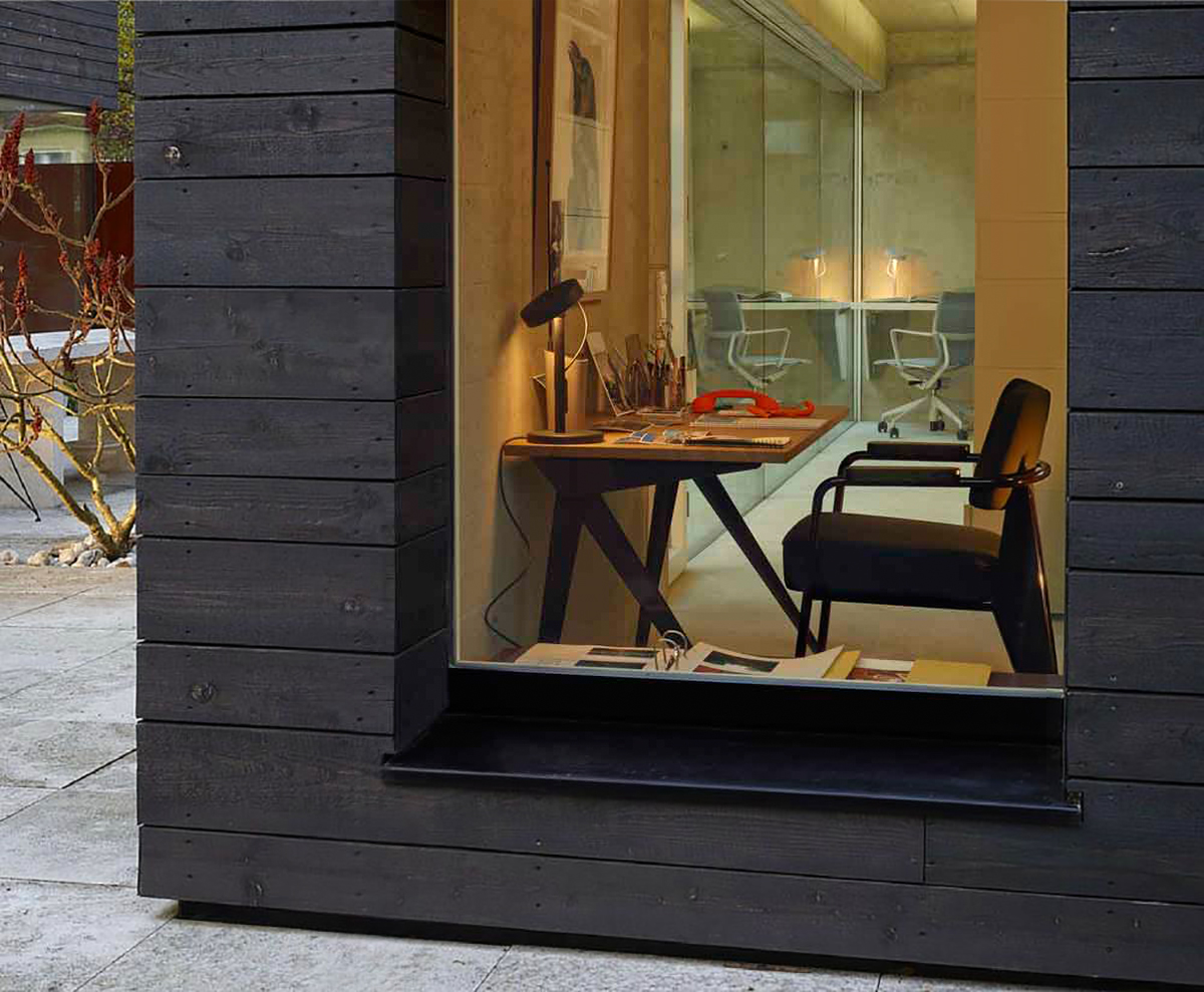 由JeanProuvé设计的Compas Direction办公桌,优雅的金属腿让人想起指南针的铰链臂 - 法语中的“le compas”。 他们的设计基于工程原理,代表了法国设计师和工程师的结构方法。 与涂油的实木桌面搭配,它们在家庭办公室形成了丰富的对比材料组合。