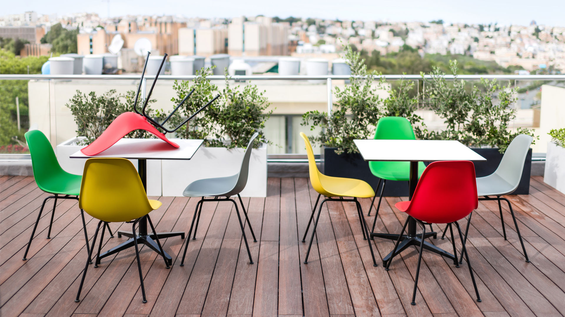 Ronan和Erwan Bouroullec的Bistro Table(2009/2010)拥有优雅的十字形底座和低调的设计,也适合户外使用,配有坚固的核心桌面。