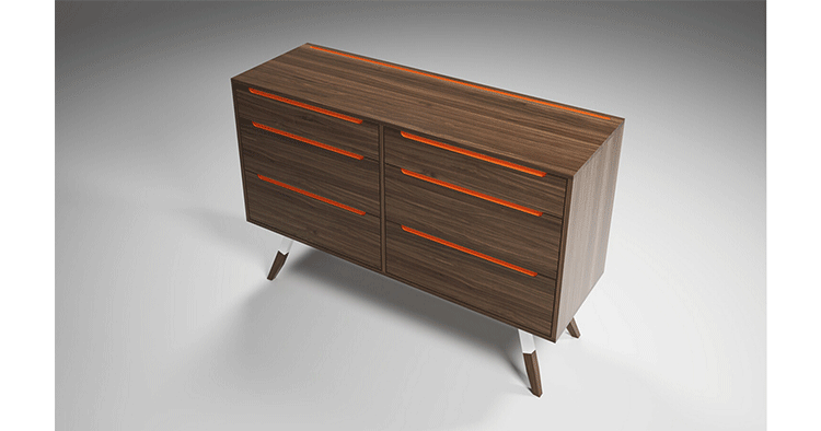 Reveloution Furniture是世界著名的家具公司,作品风格是现代传家宝家具结合世纪中期现代和当代经典造型。手精雕细琢,在加州北部制作组装,主要是材质是胡桃木实木。我们有许多设计作品,或者根据消费者提供的照片或设计进行定制。