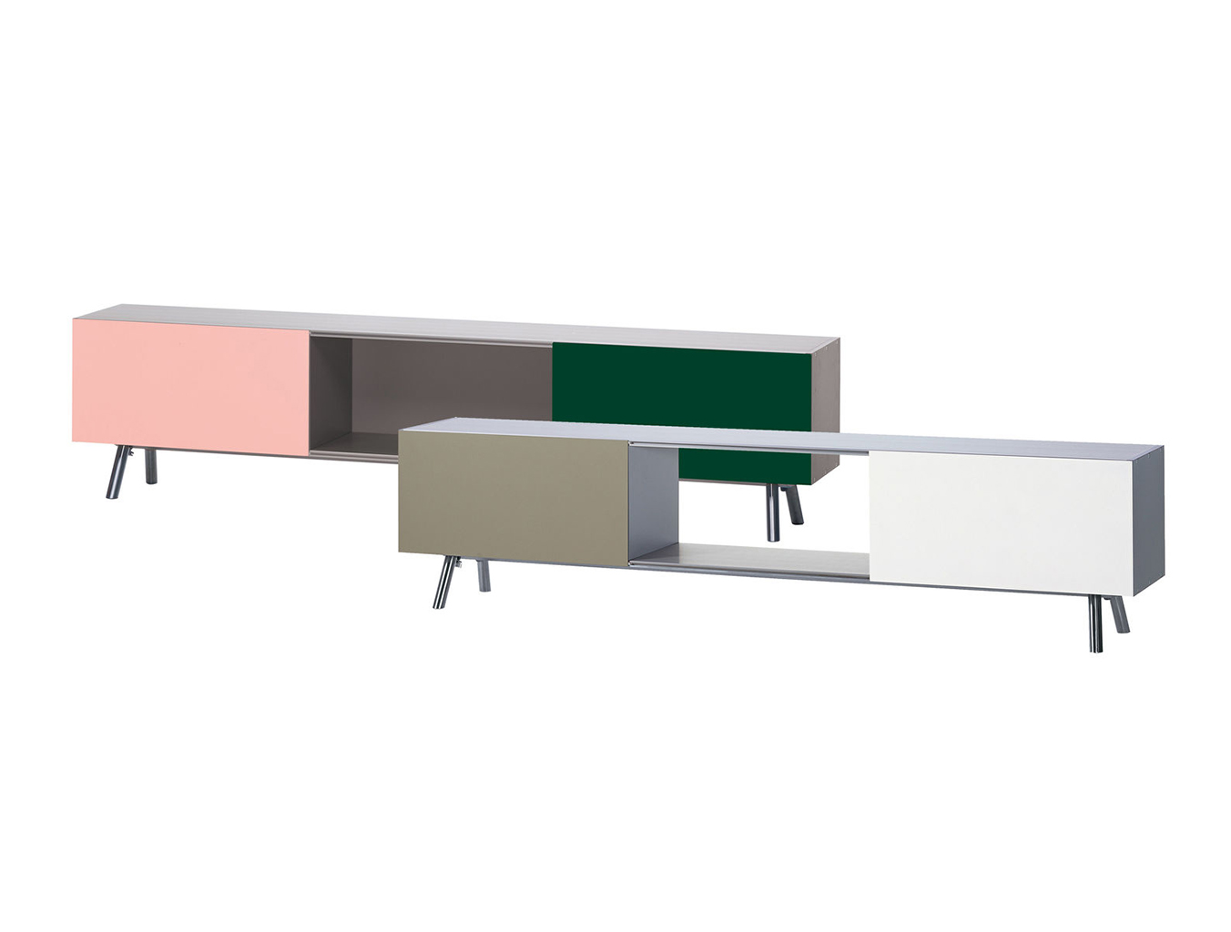 模块化结构,Kast存储单元以侧板作为基本版本开始。 对于中等高度版本,第二个基本模块放置在顶部以创建架子/壁柜组合。 在最高的版本中,添加了两个简单而坚固的木质元素。 Maarten Van Severen特别关注滑动门的颜色,这不仅强调了Kast的比例,而且给人一种清新和乐观的感觉。