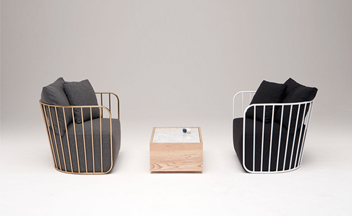 "The Bride's Veil Stool family’s unique language is meant as a graceful alternative to the archetypal bar stool.The double stool is the perfect solution for you and your date to enjoy sitting together uninhibited by separate stools.The strikingly elegant metal base is available in smoked brass,polished chrome,burnt copper,or powder coat,while the top is offered in COM upholstery.At every angle these stools offer a visual treat."