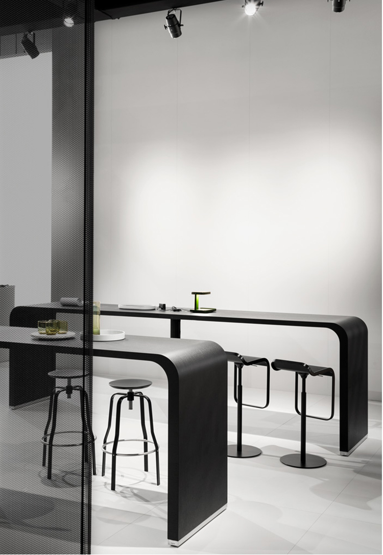 两个世界,两个“时刻”聚集在一起的传统早午餐。一方面,一个木头顶部下降在一个曲线到地板,轻轻地改变厚度,另一方面,一个严格的金属底座。由于其高度原始的不对称效果,这张桌子可以自由排列,高度相交和开放的方向,一个恒星。