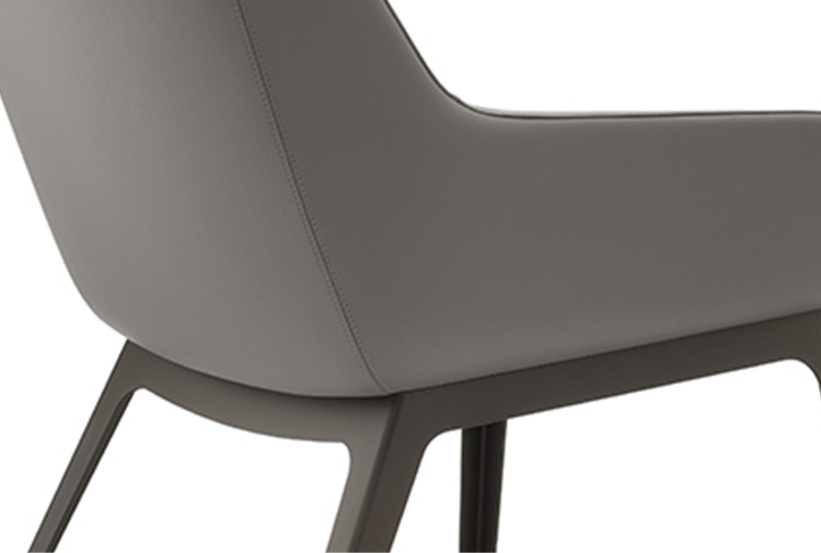 - 椅身采用一次成型弯曲木内框架;,高级皮革/或布艺扪面,脚架可选配