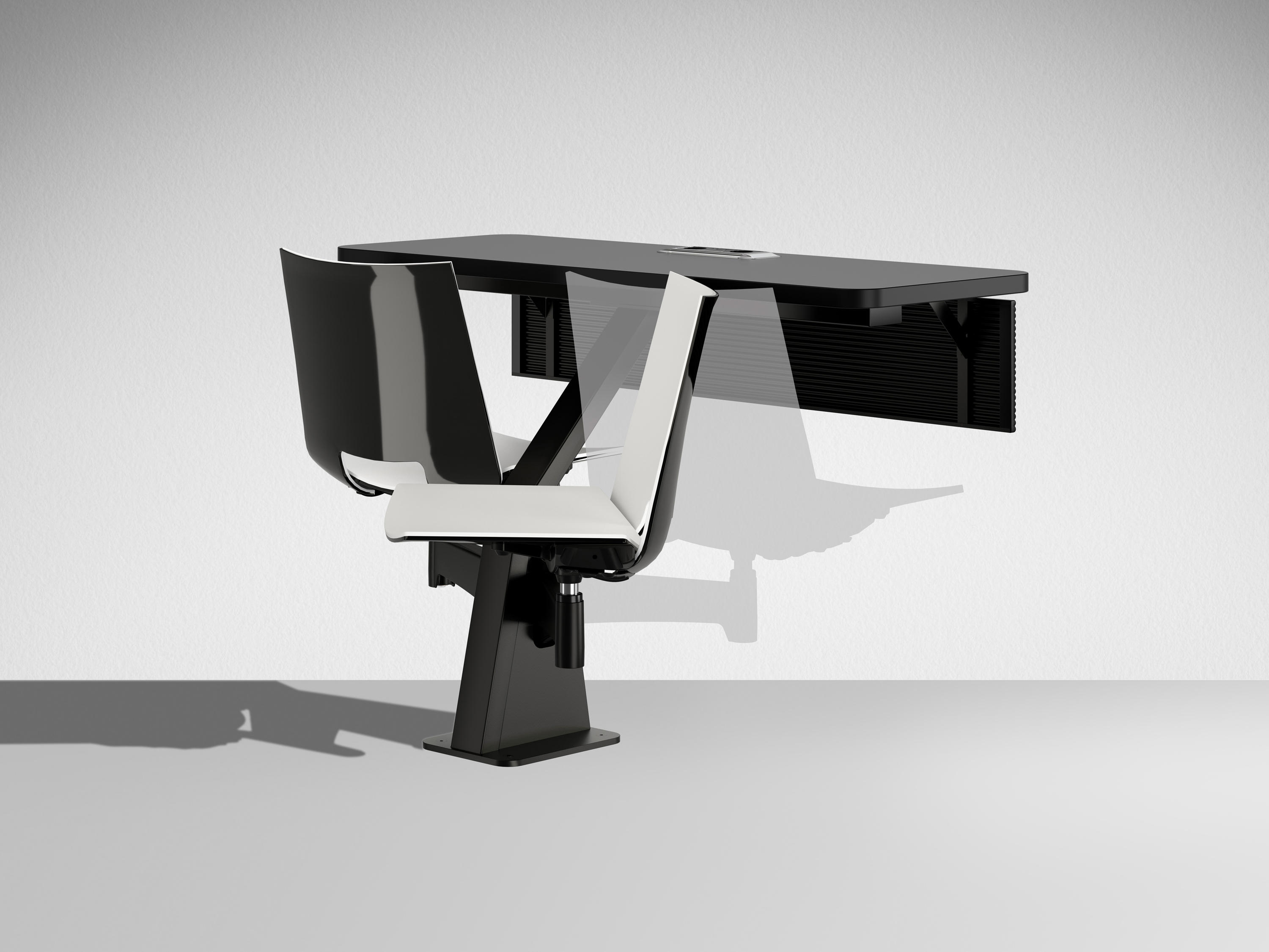 座椅支撑臂可提供64度的运动以及360度的旋转式座椅,并提供极大的运动自由度。通过在不同的行上,这提供了在同一个表上工作的可能性。