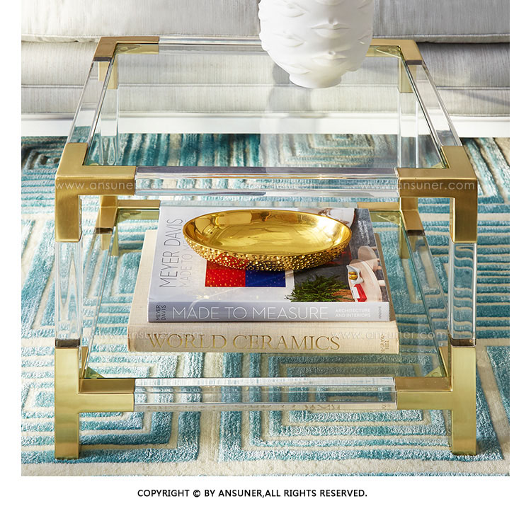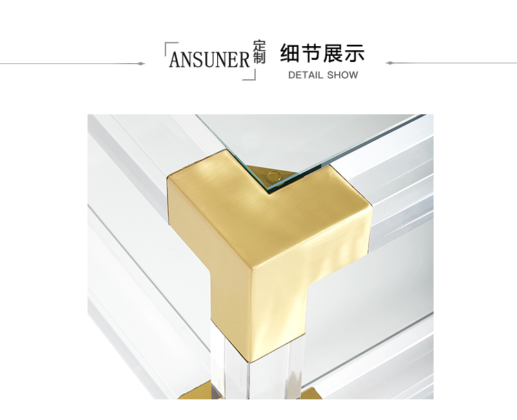 - 亚克力配备超透白玻 拉丝黄铜或抛光镍 钢化玻璃架 加厚电镀涂层