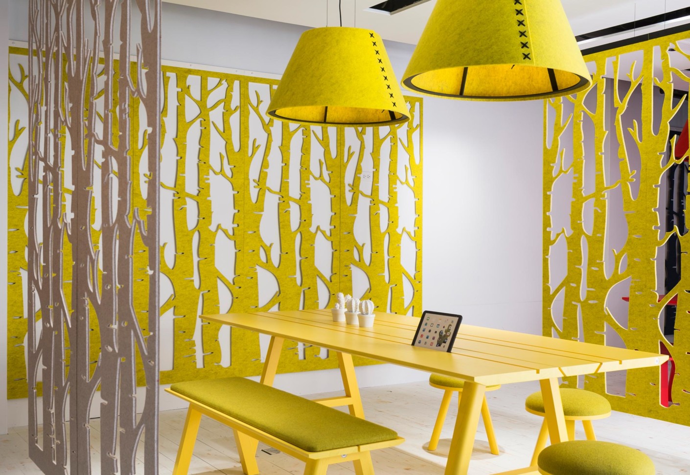 BuzziSpace 成立于 2007 年,品牌专注于办公环境的改善。随着全球房屋办公空间的日益紧凑,人们会有更长时间呆在一个开放式的环境,而 BuzziSpace 也在根据这种变化来设计产品。Buzzi Space的产品将美感与降噪的特点相结合,将生态吸音系统嵌入到设计中,为生活中的方方面面创造美好。通过毛毡的吸音性,将它用在吸音板、隔间板,以及办公桌隔断上,达到良好的保护隐私的作用。Buzzi Space 在 芝加哥,亚特兰大,悉尼,伦敦,鹿特丹均设有展厅,总部在比利时的安特卫普。最近在美国北卡罗莱纳州海波特市设立生产基地。