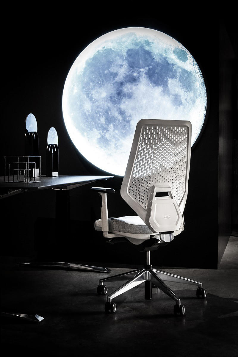 椅子的形式呼唤现代感。它的美感与跑车的独特风格息息相关。共有的功能包括动态线条和强调的铝元素。带有几何图案的多孔网状靠背赋予椅子轻盈的感觉。VANK_V6旨在说明我们在快速可靠的汽车后轮上所经历的力量和快感。