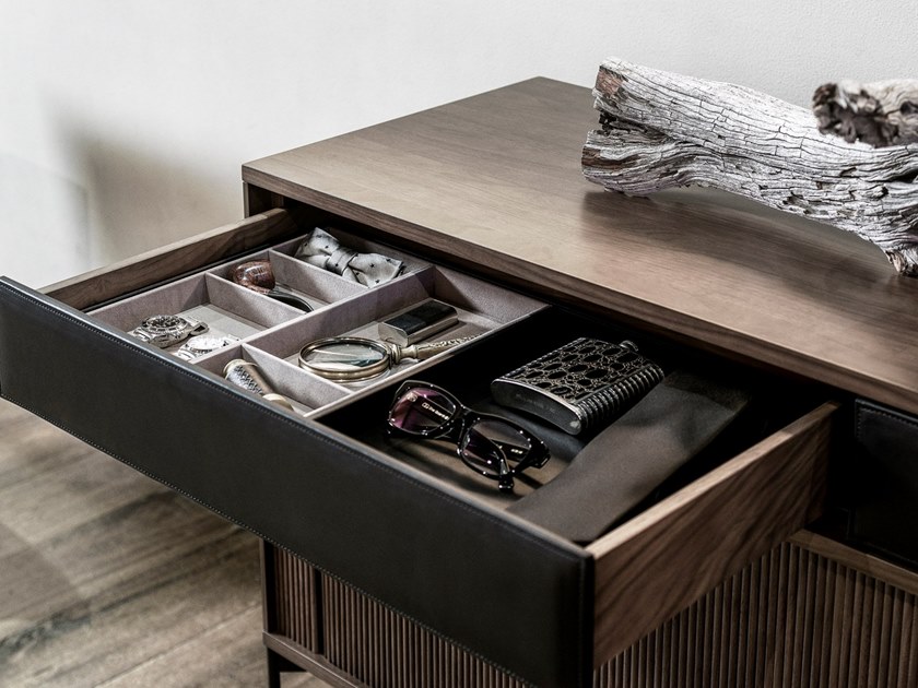 具不仅仅是现代设计的“物理呈现”。它被设想为一种“感官体验”,唤起人们对过去和根深蒂固的情感的怀旧。由高级橱柜制造商熟练的手处理过的心材的异常切割产生的“能量”使整体显得安心。雅致的推拉门受到日本风格的启发,在吉堂 传统细长的垂直线条中清晰可见 门上装饰有一系列藤条元素,通常在夏天在较老的城市房屋以及京都的Sagano竹林中使用。门滑动时令人愉悦的“沉重感”和木质摩擦的舒适声音带来了日本传统民居和 昭治 门成为焦点。就像魔术一样,推拉门可以引起好奇心,并可以有效地登录过去的文章。这些注定要持久,并且始终受到尊重和照顾。丽兹韦尔的主要目标是在住宅家具和居住者之间建立紧密的情感纽带:因此,简单的东西就变成了日常使用的小宝石。这种端庄的“人造珠宝”进一步以天然皮革色调装饰,并用植物提取物处理过,用于覆盖抽屉的正面。淡淡的填充感为这款令人愉悦的单品增添了柔软感。