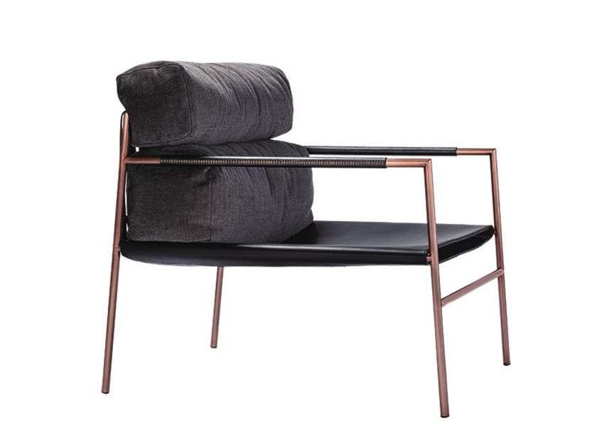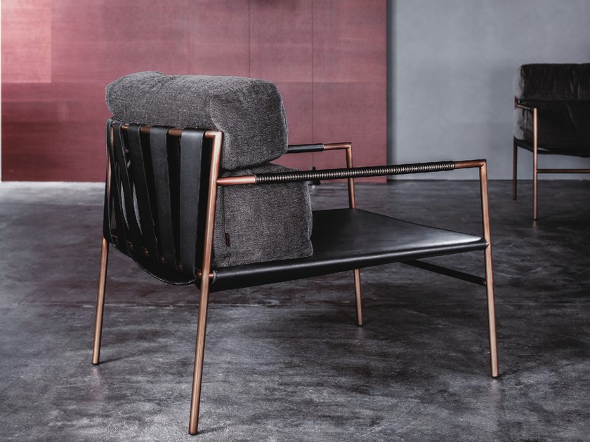 扶手椅由发际线不锈钢制成的细管状框架支撑,并支撑着深皮座椅。靠背由