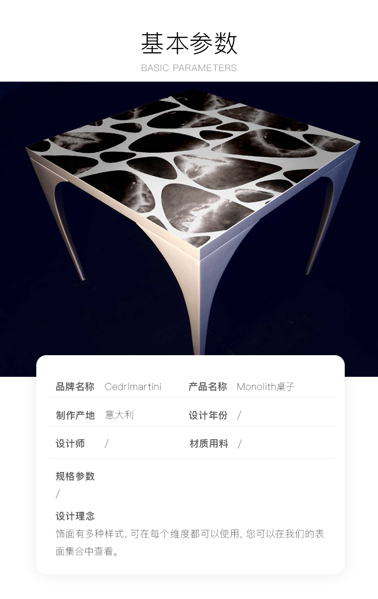 Cedrimartini由Andrea Martini和Rienzo Cedri于2004年在维琴察成立,以小批量或单件形式设计和生产雕塑家具,照明设备和家居装饰。他们二人分别来自不同的背景,分别是艺术研究领域的Andrea和珠宝工业设计领域的Rienzo,他们利用对工业设计的热情,将经典设计创新为受有机形状启发的未来主义作品。