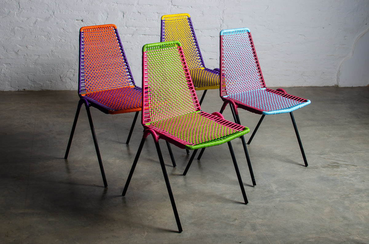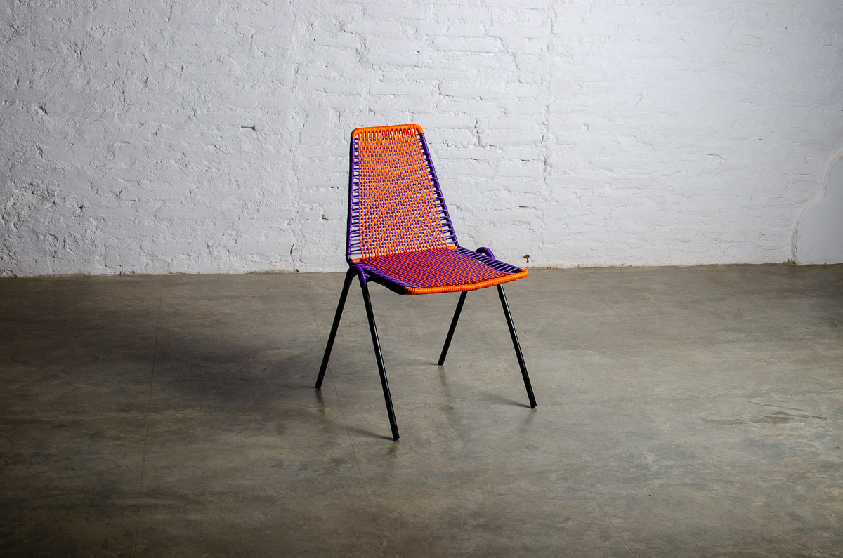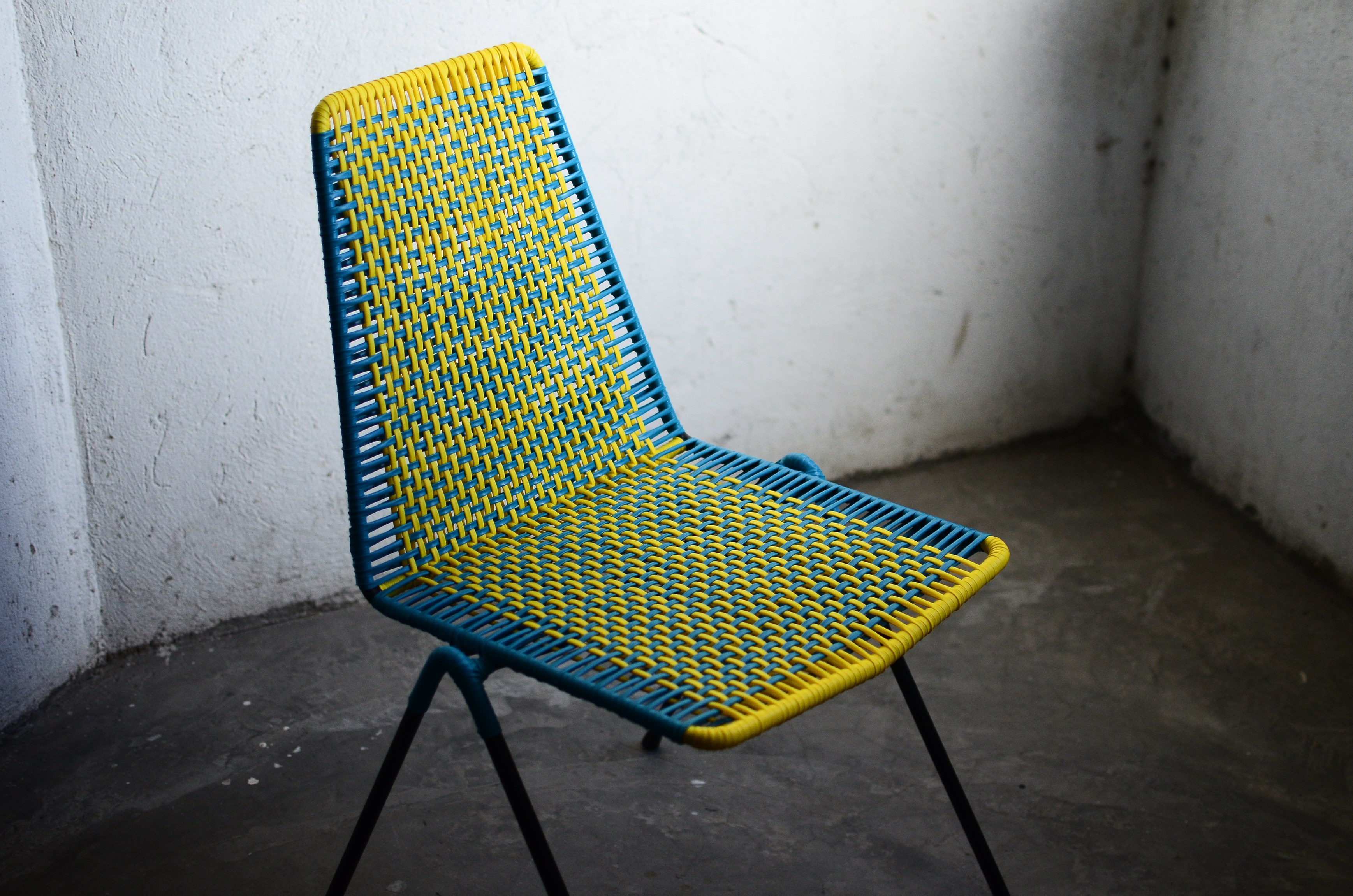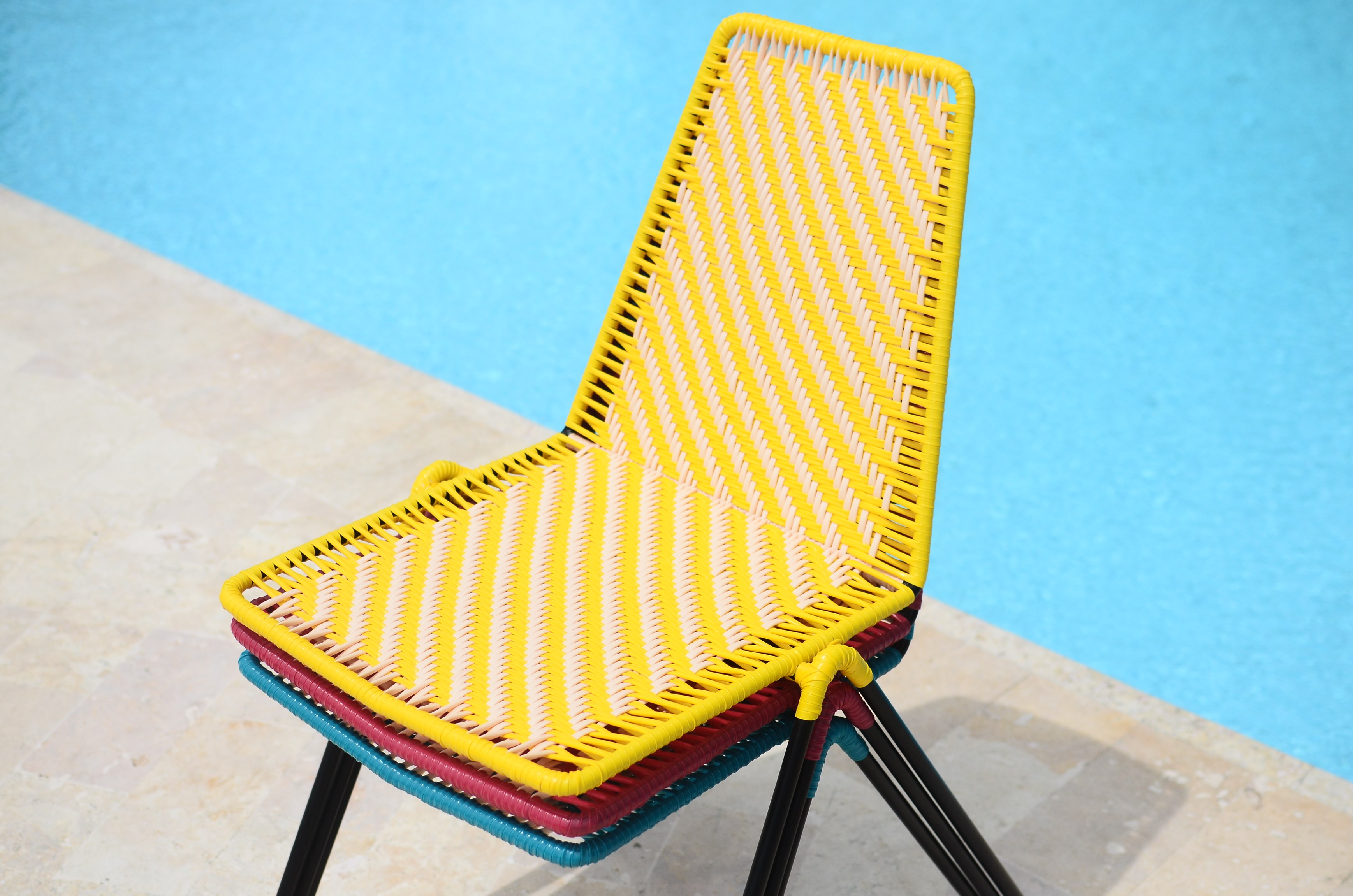 明显而简单的形式是受香蕉区工头和农民休息姿势的启发。De la finca是用于餐厅或书桌的椅子。手工制作的PVC绳索织物,其钢杆结构覆盖有聚氨酯或静电漆。可堆叠。