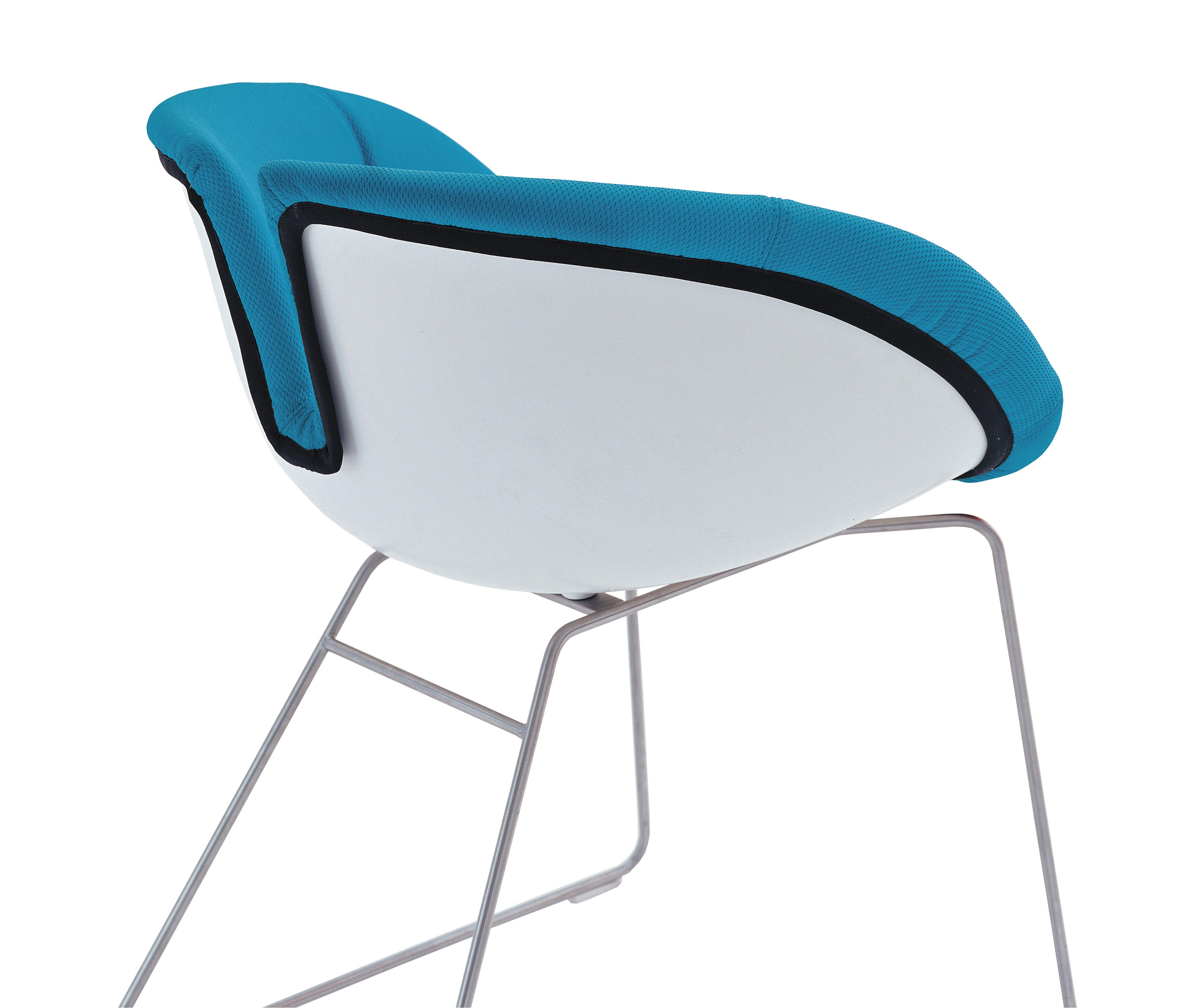 - 采用环保玻璃纤维或塑胶椅身,高级布艺或PU扪面填充高密度海绵,弓形或方形金属脚架做工精良