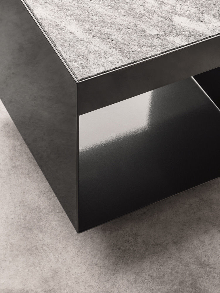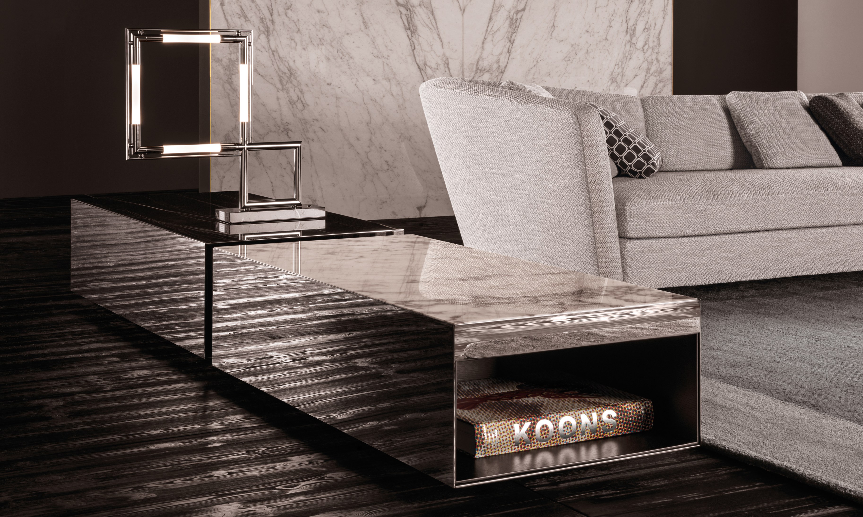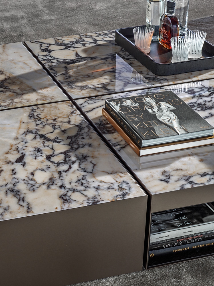 - MDF 亮铬色、亮金色和亚光铜色金属构架 抛光紫色阿拉伯色大理石 抛光撒哈拉大理石或Moka色的白蜡木、Moka色橡木