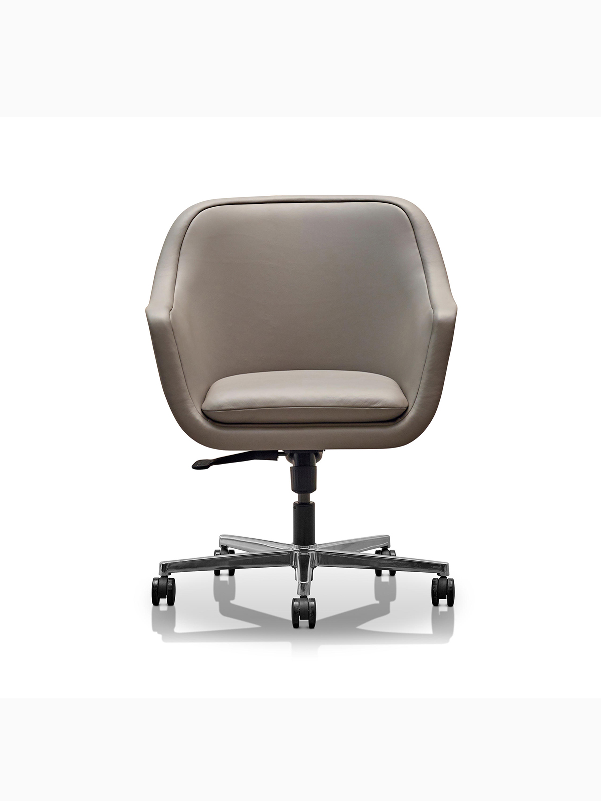 - 真皮或布艺 电镀铝合金框架、扶手及四星底座、五星底座和滚轮