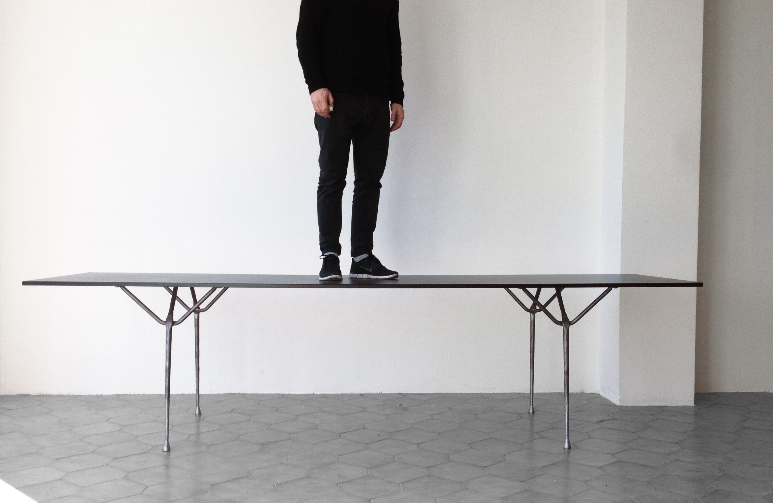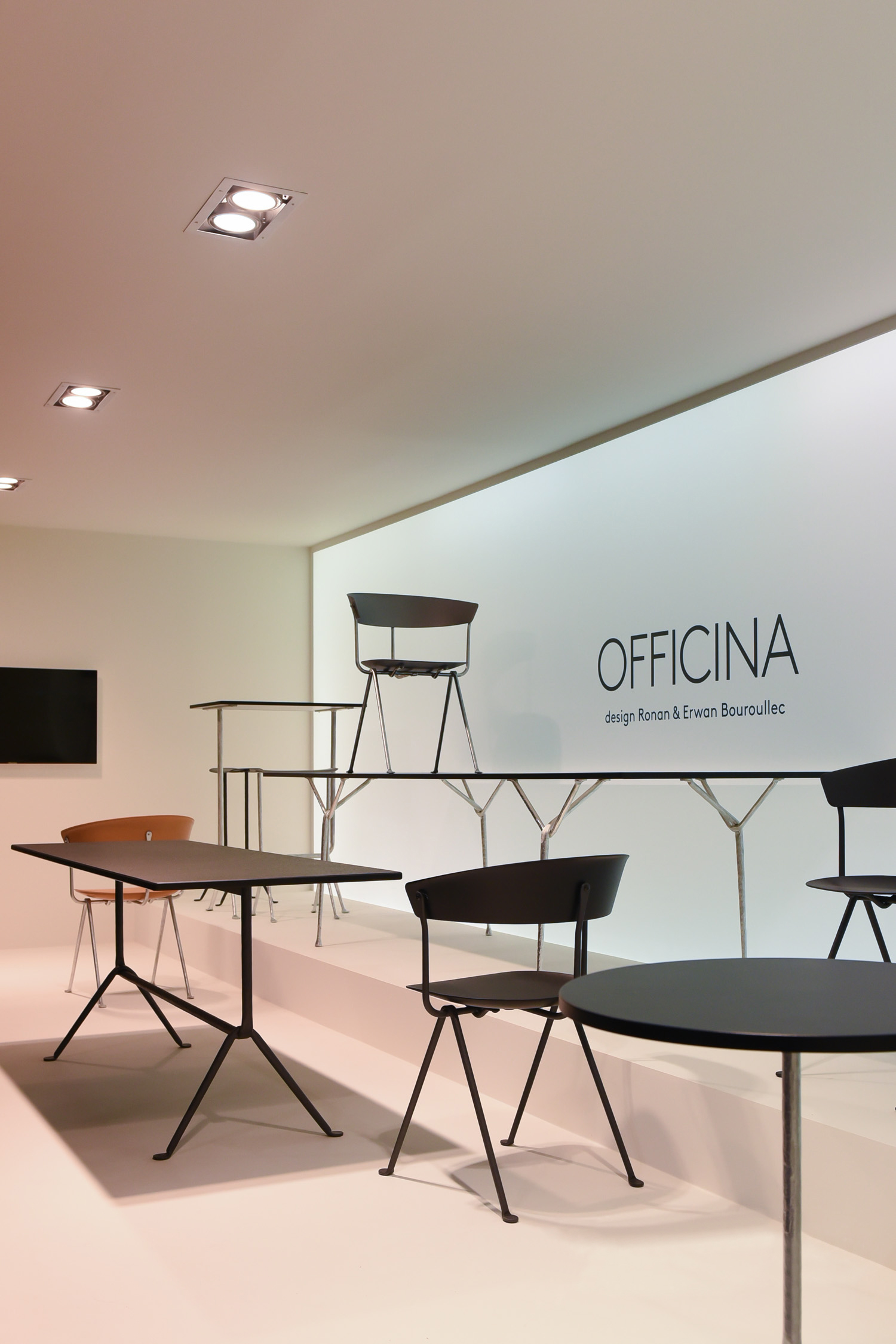 设计师罗南(Ronan)和Erwan Bouroullec用办公桌边设计了一种古老的锻造和锤击铁,用来制作各种形状。他们的目标是“利用这个古老的制造过程,给它一种新的视觉语言,”Erwan说。语言具有真实性和思想性。罗南指出:“通过对那些赋予它们形状的工具的随机、机械痕迹的反射,这些东西给工业计划带来了一股清新的气息。”罗南补充说:“这个项目的微妙之处在于,它使用了这些暴力、强烈的手势,同时,材料的最小使用和它们的巧妙手法使它变得微妙。”几何形状的基座具有系统性,可以承受不同高度的压力,可以承受不同大小、不同形状和不同材质的顶部。