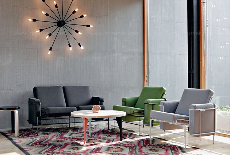 由Konstantin Grcic为Magis设计,休闲家具的交通系列提供了对比的研究:硬和软,线性和体积,俏皮和复杂。 钢制杆架具有平行和交叉线,为每个部件带来能量。 靠垫块,整齐地用布料或皮革装饰,传达出舒适和平静的感觉。Grcic按比例播放,扩展了交通理念,创造了不同座位形式的词汇:扶手椅,沙发,长椅和躺椅。 后来,他扩展了这个概念,创造了低矮的桌子,可以选择看起来漂浮在角形金属框架上方的石头。