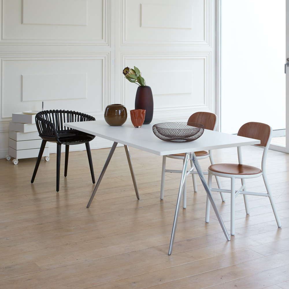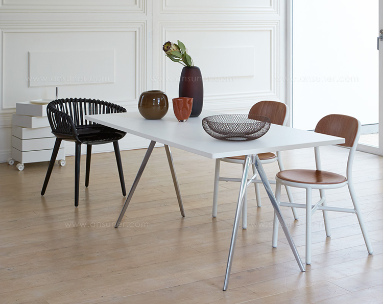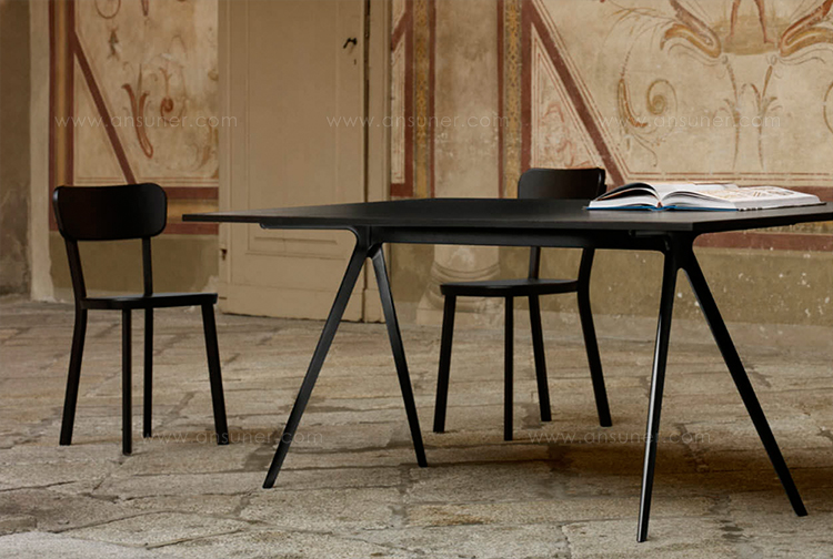 Baguette桌子是一张非常纤细的餐桌,它看起来像浮在水面上,但实际上它足够结实,可以容纳整个自助餐。法国设计师Ronan和EwanBouroullec的外观采用长而细长的顶部固定在铸铝腿上创造美味的幻觉。Baguette对我们大多数人来说,这是一种令人印象深刻的法国面包,但“魔杖”这个词的最初定义启发了这张桌子,它有两种长度:"62"和"80"。长而薄的顶部可以是1英寸的中密度纤维板是白色或黑色,透明或白色玻璃,或板岩或石英岩,铸造铝腿和框架可以抛光或涂白或黑色。除中密度纤维板外,所有顶部均适用于室外使用。