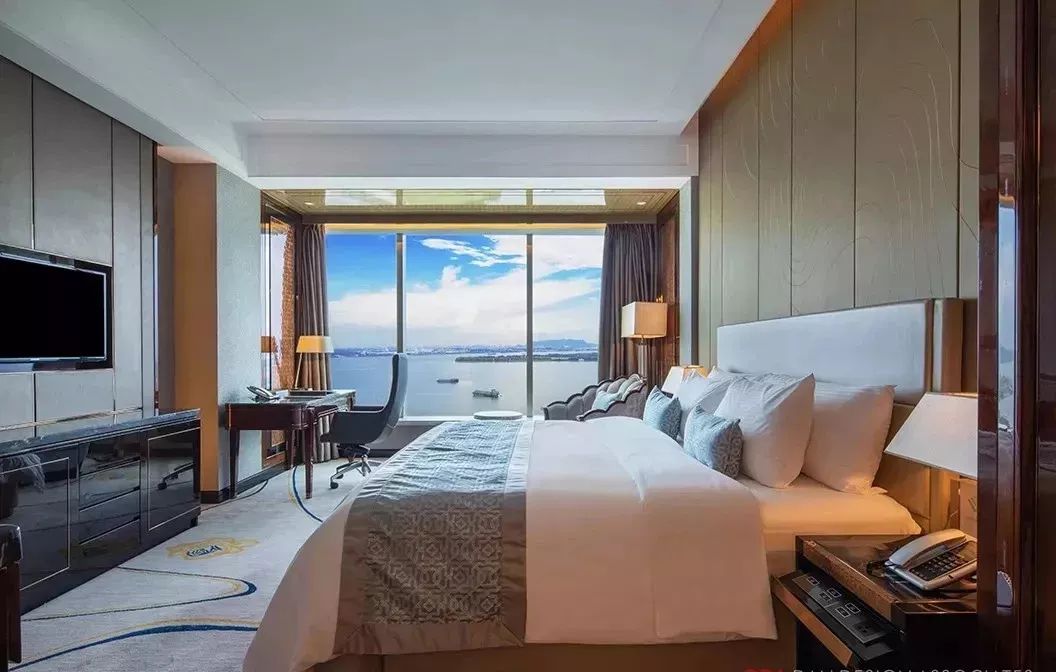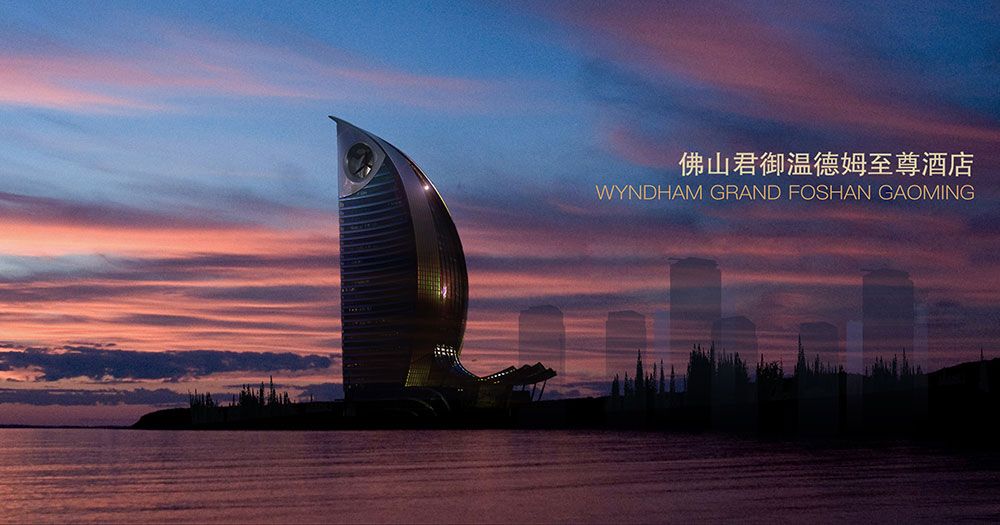 作为迪拜帆船酒店的姐妹篇,佛山温德姆至尊酒店外观设计由多个弧型建筑立面生动巧妙的组合,形成气势轩昂而又俊朗灵动的独特形象:似济海的风帆,更似银龙鱼昂首欢跃西江,寓着“鱼跃西江”的独特外观。如何巧妙利用它的空间和结构,营造出紧扣主题的设计效果,让室内设计与独特的建筑外观保持风格上的统一,成为考验设计师的一大难题。