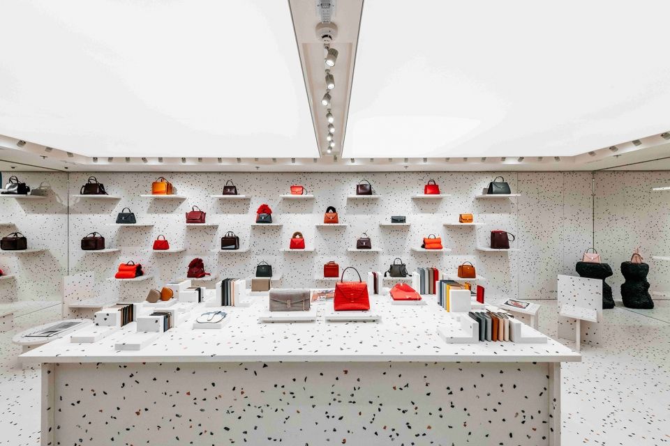 Valextra创立80余年来,始终将传统与现代的巧妙融合视作核心愿景。追溯Valextra的意大利血统,Max Lamb将经典意式建筑风情引入Valextra香港海港城精品店,为传统的意大利建筑材料——威尼斯水磨石赋予新意,变化出独一无二的装饰纹样。经由设计师巧妙演绎的水磨石,优雅点缀店内的各个角落,从地面、墙壁,到宽大的柜台和陈列架,尽显意式魅力。水磨石是一种表面光滑、富有光泽的材料,嵌有形状万千的彩色小石块,营造出虚实相衬的氛围,琳琅满目的Valextra精品宛若"悬浮"其中,在时空交错中绽放隽永魅力。店内呈现出奇妙的光学视觉效果,让Valextra的缤纷色彩更加生动鲜活。Barrisol软膜吊顶嵌有隐形射灯,点亮店内空间,散发迷人的光晕;柔和灯光下,Valextra皮具精品如同一件件小巧的意式艺术杰作,凝聚了源自意大利的精湛工艺和品牌对品质矢志不渝的精神。
