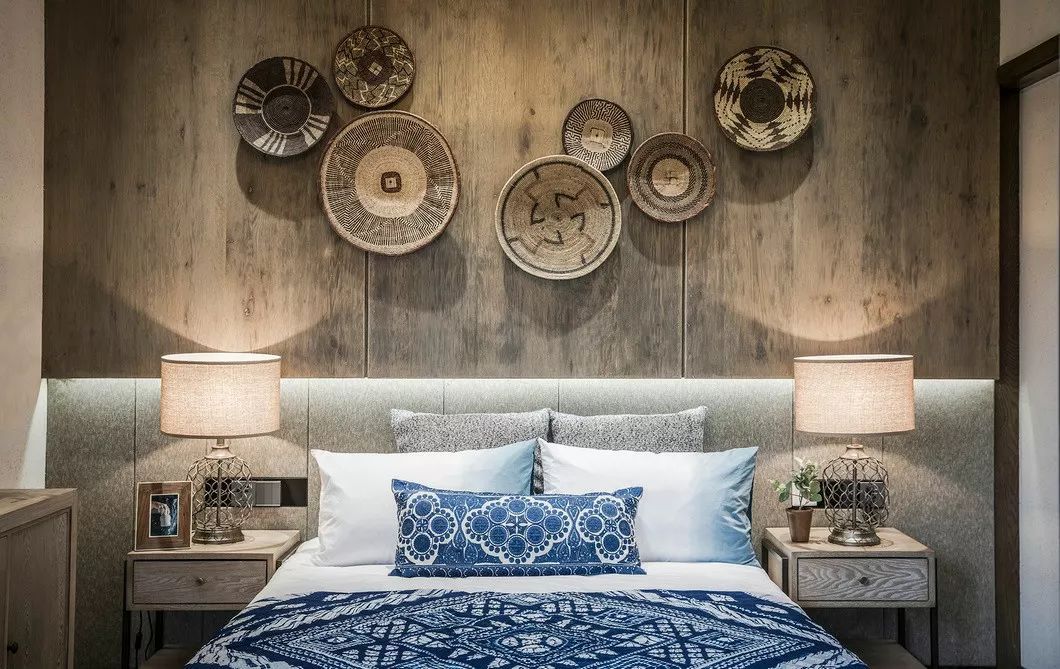 温馨的原木色是空间的主调,原始气息的编织艺术装饰,未加修饰的木板,仿佛能够触摸久远时代的共同记忆,安抚潜意识的心灵界域。自然的柔光倾洒,装饰画与整体环境的色调和谐统一,自然的色彩充盈,安静而有生气。整个空间以自然的搭配营造返璞归真的气息,编织、毛线、原木、陶樽、北非花纹,抒写着空间的朴实风貌,而设计并未停留在回归原始,过度强化粗粝之美,而是考虑到用户的体验质素,以舒适现代风与之结合,碰撞出崭新的空间意趣。