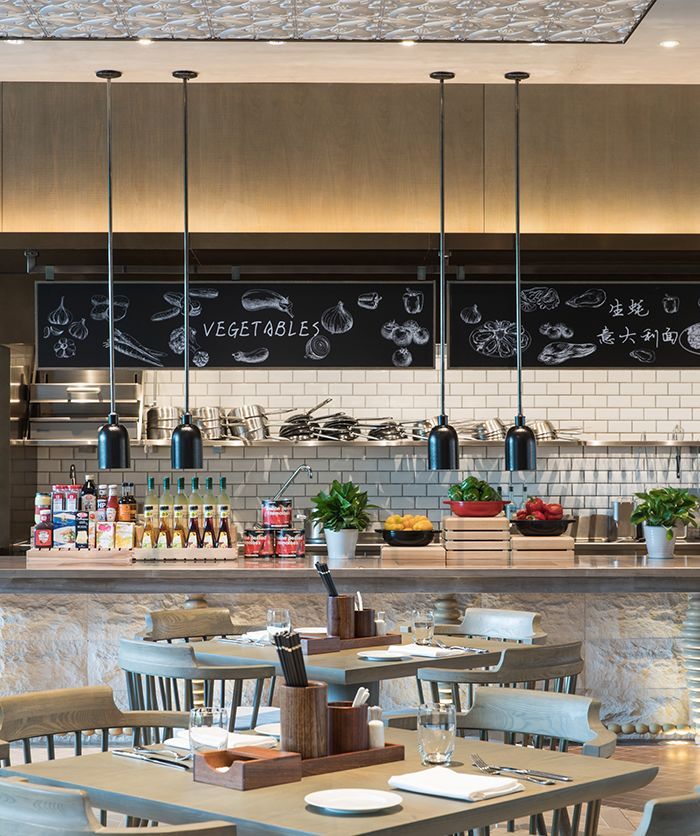 食物是可以窥探地方传统文化的途径,一盆一盅,一蔬一食,均与习俗文化有着千丝万缕的联系。正所谓"岭南之市谓之虚,言满时少,虚时多也",酒店的全日制餐厅便以传统岭南市集体验为设计来源,以食街的氛围呈现餐厅特色,各种特色美食分布于不同的档口,宛若旧时的岭南"墟市"。