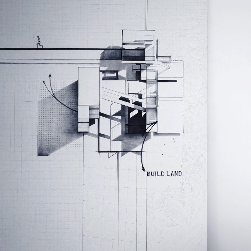 有人说"破坏"是个贬义词,带有很可怕的意味。但对于一个建筑公司来说,那便不一样了。"破坏"是"重建"的开始,是打破旧有规则的力量,是每次蜕变的决因。所以它也可能是"褒义"性质而存生。本案设计是带着"颠覆"性破坏的,或许具体说是带有"当地"建筑业态"颠覆"性。故事是围绕着一本我们设计的册子——"天书"开展的。logo是三个形态的三角形交织一起,组合成抽象的皇者之冠,形态各观其象,刚刚好为空间创造了主题,入口玻璃门外,借用了LOGO的其中一角,一角四周,低调地拓宽了入口前厅空间,同时三角造型颠覆了原建筑柱网的方正感,建立"景、桥、室"三进间,悄悄地把高层建筑并不美丽的柱子藏起来。