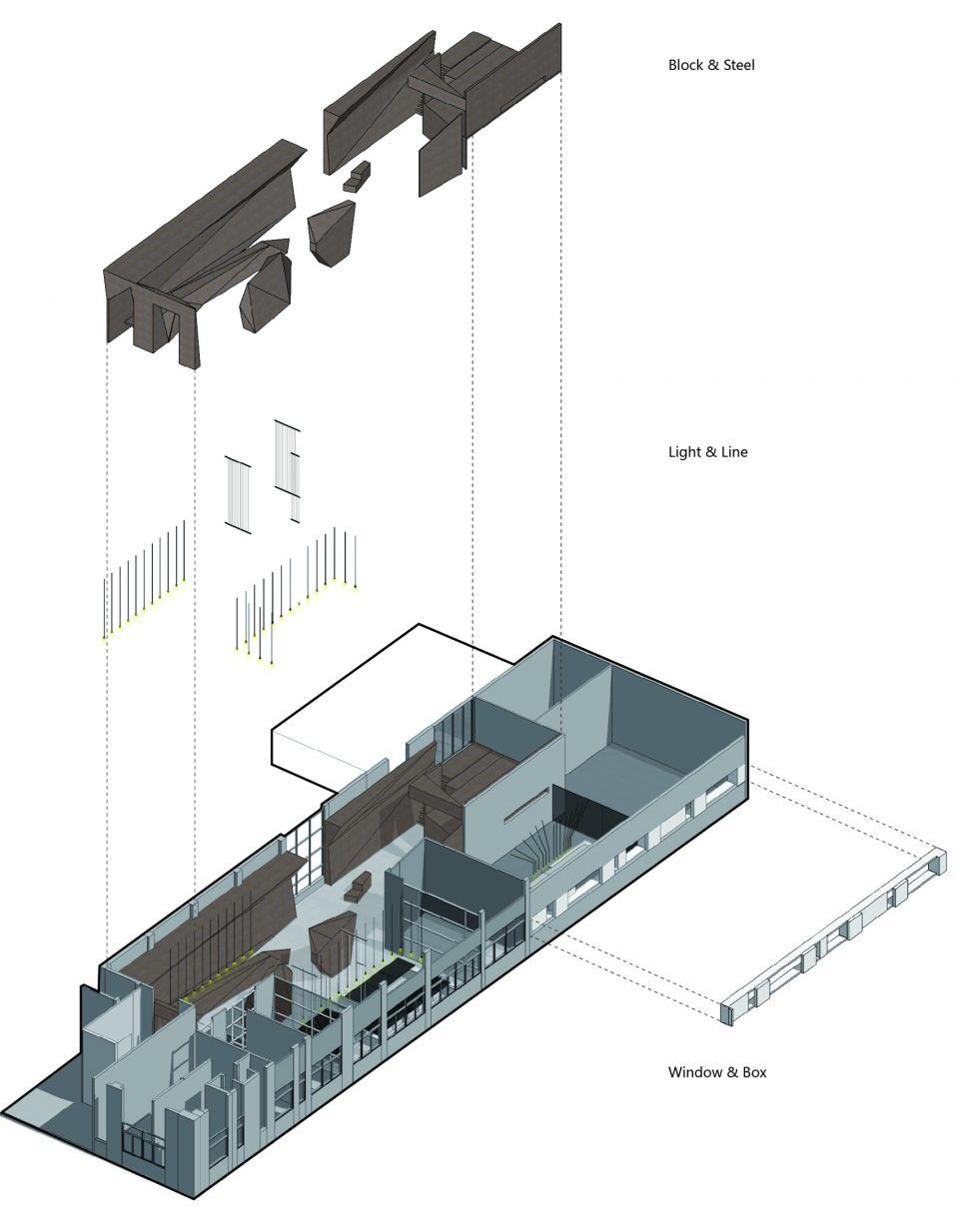 AD ARCHITECTURE办公空间坐落于汕头市,一座由老厂房改造的创意园里。这些老房子见证了这座城市的起落,随着城市迅猛的发展扩张,它们逐渐被遗忘或等待重新拆建改造。目睹着一幕幕的发生,我们仿佛能听到它们无力、落寞的诉说,不由让我们记起第一眼看到这空间时它所呈现出的原始生机和独特气质。难道它曾经带给我们有关于历史的诉说就这样结束了吗?当所有感性涌上心头,我们开始思考,并决定通过改造,让其重新呈现出属于它的戏码。感知空间所赋予我们的灵感,不过多去改变它,而是聆听它的诉说。在这一次设计中,尊重空间原有的意识形态,再注入新的活力,这正是我们需要去做好的事。