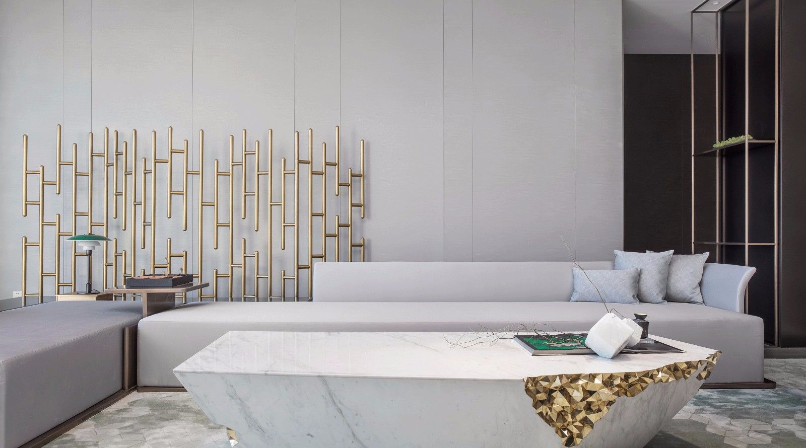 经过对传统纹样的反复提炼与解构,金属屏风用一种国际化的语言呈现,重释"空中御花园"的文化意境。人文与数字化时代的生活美学,在这里用娓娓而叙的方式,讲述融和怡荡的故事。