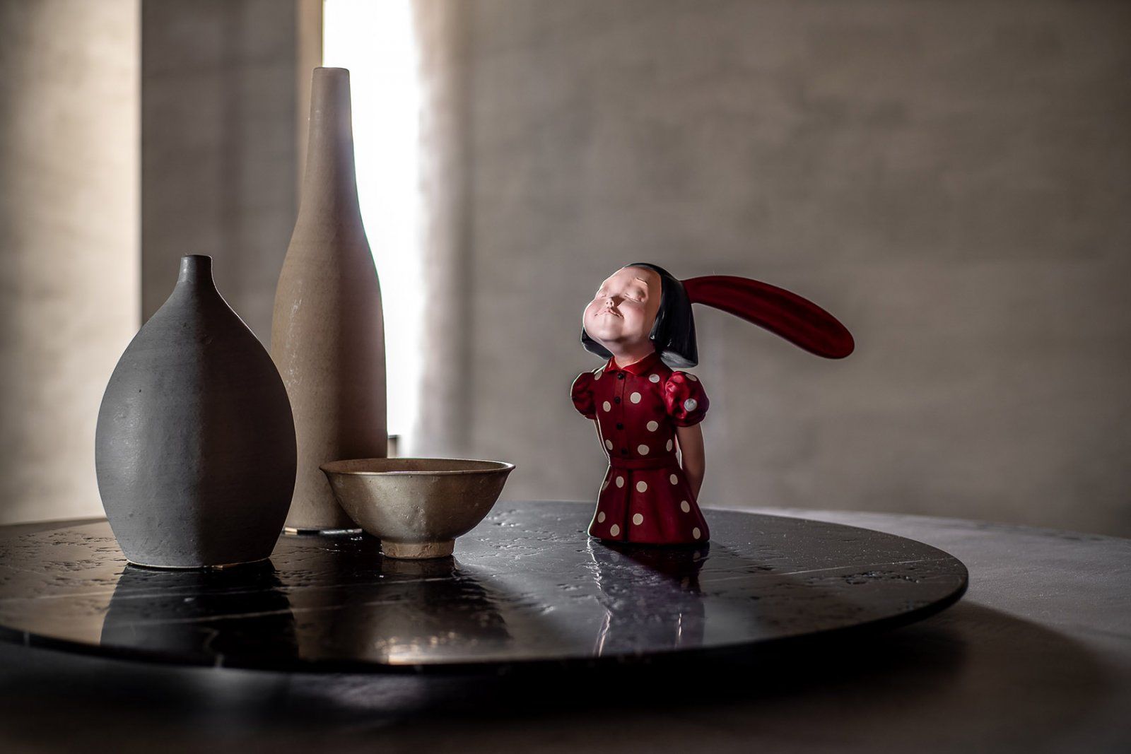 空间的呈现,大都反映出居住者的需求及意境。蓝眼该案中,以水泥质朴特性作为整体氛围呈现的主要素材,反应出居住者对居所那份纯静的追求。入口处那幅收藏品,来自中亚乌兹别克斯坦共和国百年编织的地毯,其麻织品流露出经过淬炼的岁月痕迹,和以艺术品方式呈现,曾经为台湾建筑贡献的原生桧木,相互辉映。而铜、铁等相关材质,亦低调性的出现在空间中,使得这份宁静多了些许丰富的变化。木质及石材的运用,亦使得空间多了些温润及细致的表达。主浴矿物水泥及防水性马来漆的呈现,不可言喻的再次表达出使用者追求生活空间中的那份纯静感。