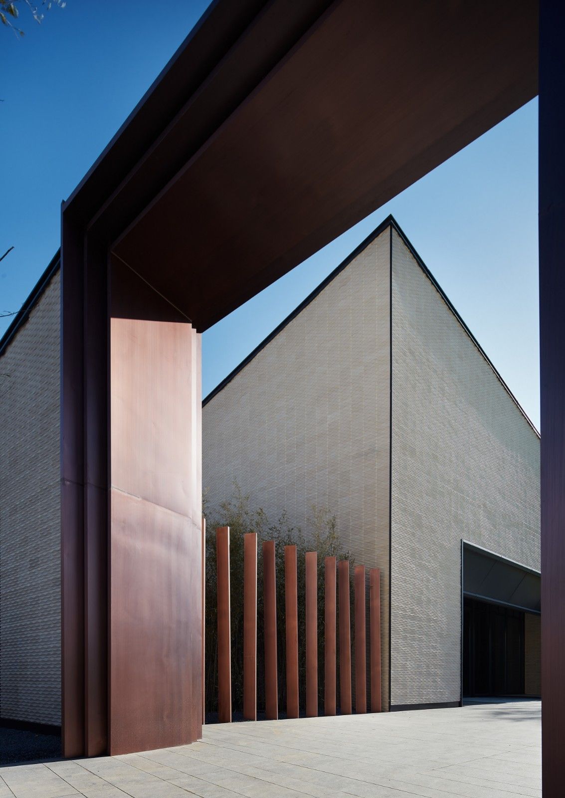 摺园建筑因其走势蜿蜒曲折,如同摺叠,而被称为"摺园"。线性曲折的墙体既塑造了园林,又创造室内连贯的空间,打造一番苏式园林中步移景异的景致。设计师将建筑体量一分为三,围合出三个庭院;上下两层的建筑结构,使景观资源更加错落和丰富。