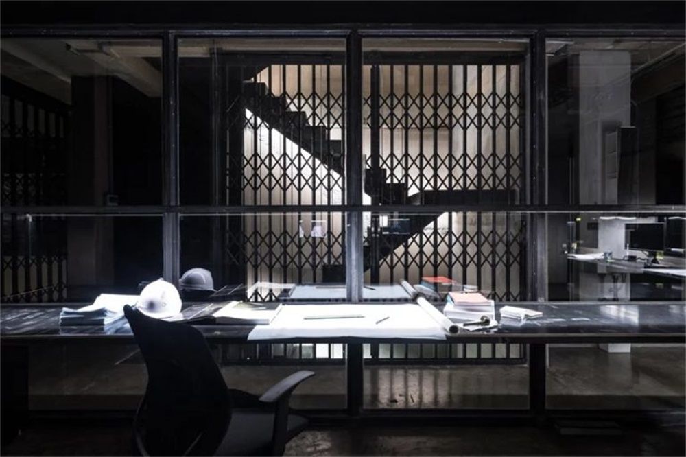 in talad noi district of bangkok, at a corner where two meandering alleys meet, stands the new creative crews office. the project involves the adaptation of two adjoining townhouses into a new workplace for the team. the interiors take advantage of the industrial look of the raw concrete structure, adding glossy elements and green lively splashes to contrast the strict mood.