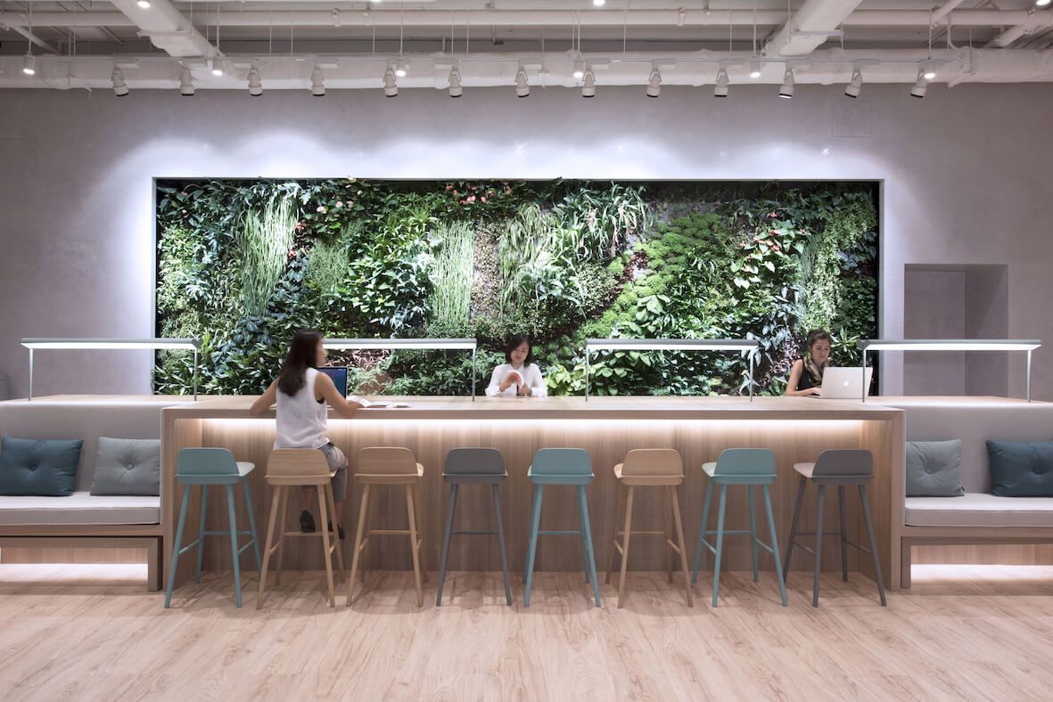 该项目位于香港铜锣湾的Midtown,占地四层楼,面积,约3,000平方米。其中15楼是一个社交楼层,由不同类型的共享工作空间-"The Stage"、"The Library"、"The Garden" 和一个由「垂直花园」的创始者-法国著名植物学家Patrick Blanc 设计的直立式花园所组成。