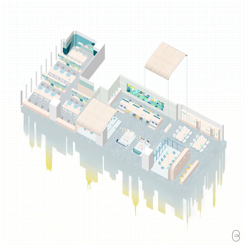 香港设计师Bean Buro为The Work Project设计了崭新的联合办公空间(Coworking Space),其中包括服务式办公室及共享工作空间。该办公空间预订概念来自酒店,简单而有弹性,用户可视乎需要决定租用期限及大小。设计亦能配合用户的变化和发展,灵活地作出变化。此外,用户亦能预订不同社交空间举办休闲活动等。