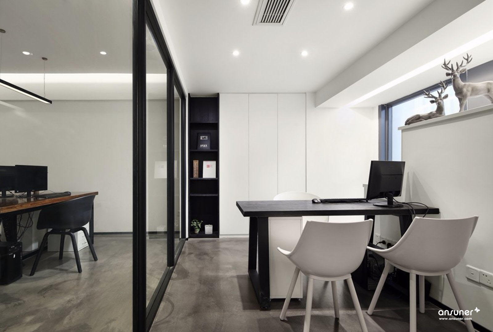 作为坚持100%原创,全实景呈现的设计工作室,装修一定要非同一般!现代、简约、整洁、大方、质感,是现阶段的潮流,追求时尚之余,更注重空间的布局与功能的完美结合。由于线条简单、造型简洁、没有多余装饰元素,现代风格讲究材料自身的质地和色彩的配置效果。过多的颜色会给人以杂乱无章的感觉,而现代风格中更多的会使用一些纯净的色调,局部跳色,给人耳目一新的惊喜。作为办公场所,必须要有的接待区、办公区、洽谈区、休闲区,设计师通过布局、吊顶、材质的区分被完美分割。电视背景墙、书柜、展示柜,既满足了整体的美观设计需求,又很好的兼容了储物功能。休闲区采用了出挑的黄色单人沙发,似一股暖流,打破了整体空间冰冷、刚硬的感觉。
