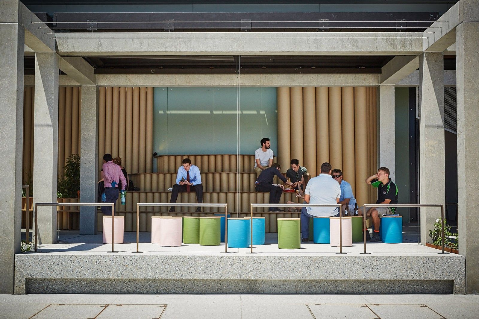 Wulugul Pop Up由不同的"区块"组成,反映出项目未来的可能性。它提供了一个让人们在港口休闲、见面、户外工作、用餐或者结束了一天的工作后在这里喝一杯鸡尾酒的机会。Foolscap负责人Adele Winteridge解释说:"我们工作的重点放在了人们如何与场所互动,在Barangaroo,我们希望创造一种人们可以相遇、互动、学习或者只是闲逛和探索悉尼另一面的体验。这是场地中会发生的一系列事件。"