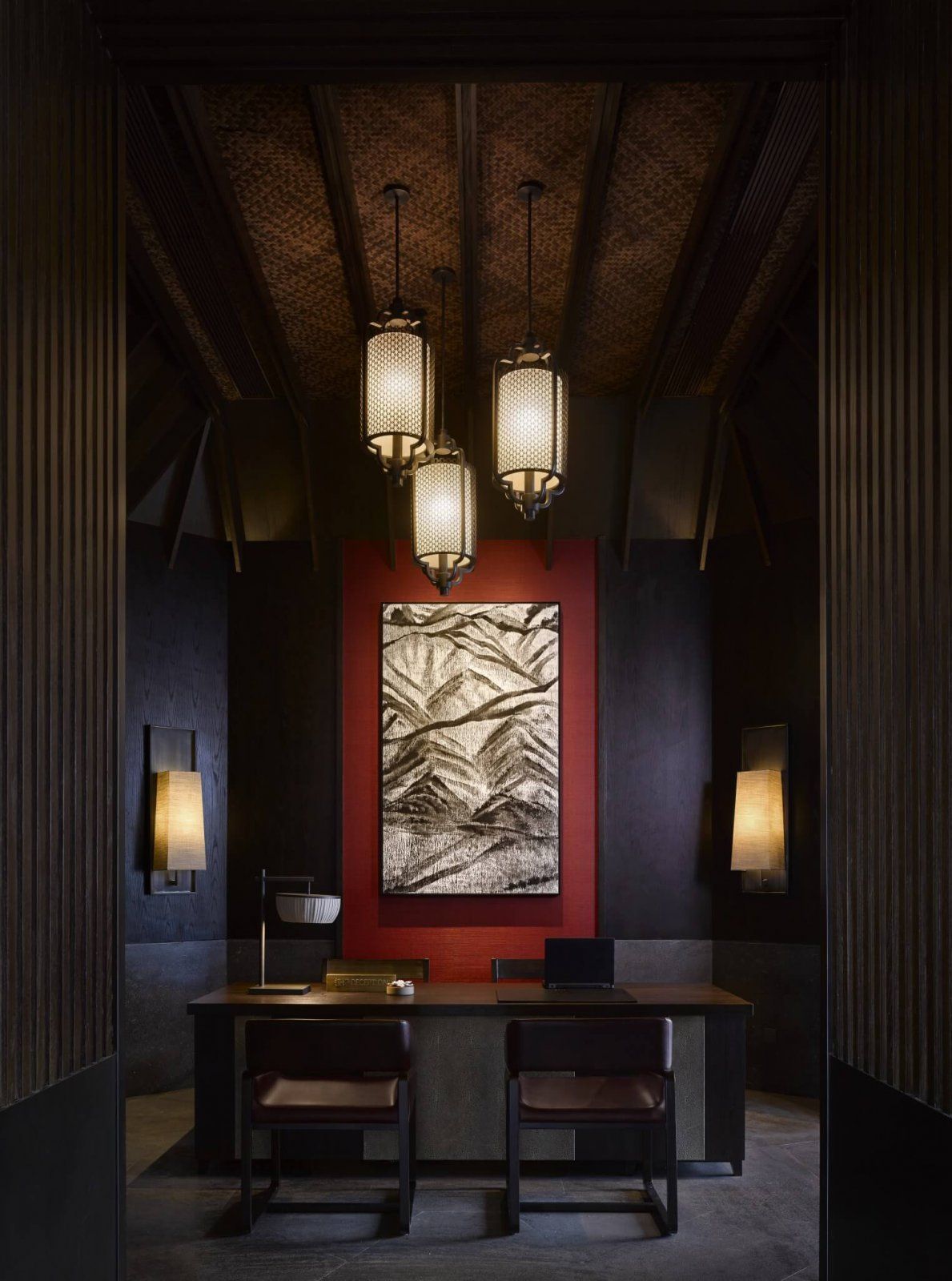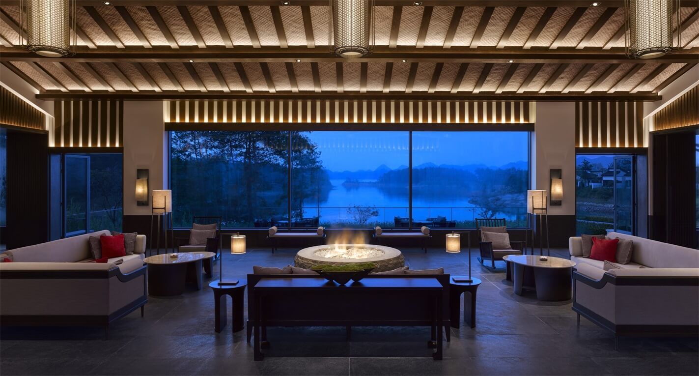 全球首屈一指的酒店室内设计公司——赫希贝德纳联合设计公司(HBA)完成了坐落于隐蔽、独特的千岛湖上的五星级度假村安麓的设计工作。千岛湖安麓将该品牌的高端性提升至全新水准,同时将宁静的环境与周围郁郁葱葱的风景融为一体。这片位于浙江省的人造湖拥有千余个小岛,小岛们供养着奇异的野生动物,岛上遍布洞穴和高山,长满了茂盛的树木和植物。度假村将与其周边环境和谐共处,不留痕迹地融入自然之中。 “我们的自然配色以及将广阔风景尽收眼底的视野将为客人们带来身临其境的体验。”HBA合伙人Connie Puar表示,“我们打造的定制家具与这片土地和谐交融,同时又不失精美和现代气息,以配合品牌审美。”安麓立足于中国丰富的历史、传统、文物与文化遗产,试图从内心深处唤起人们对过去和现在的感受,营造带有正宗本土基调的地方感。