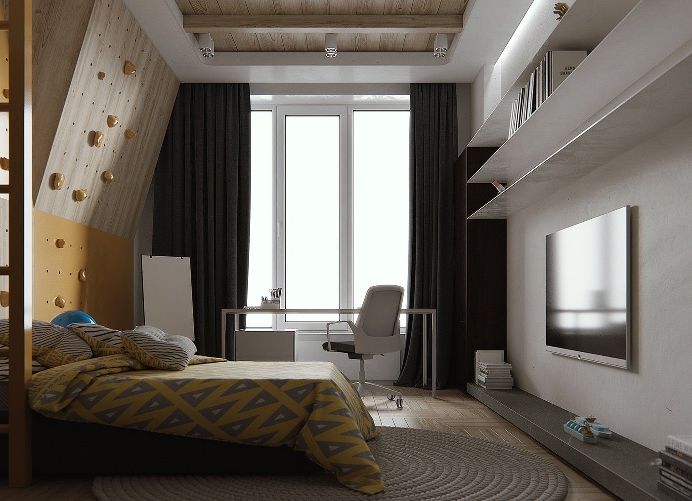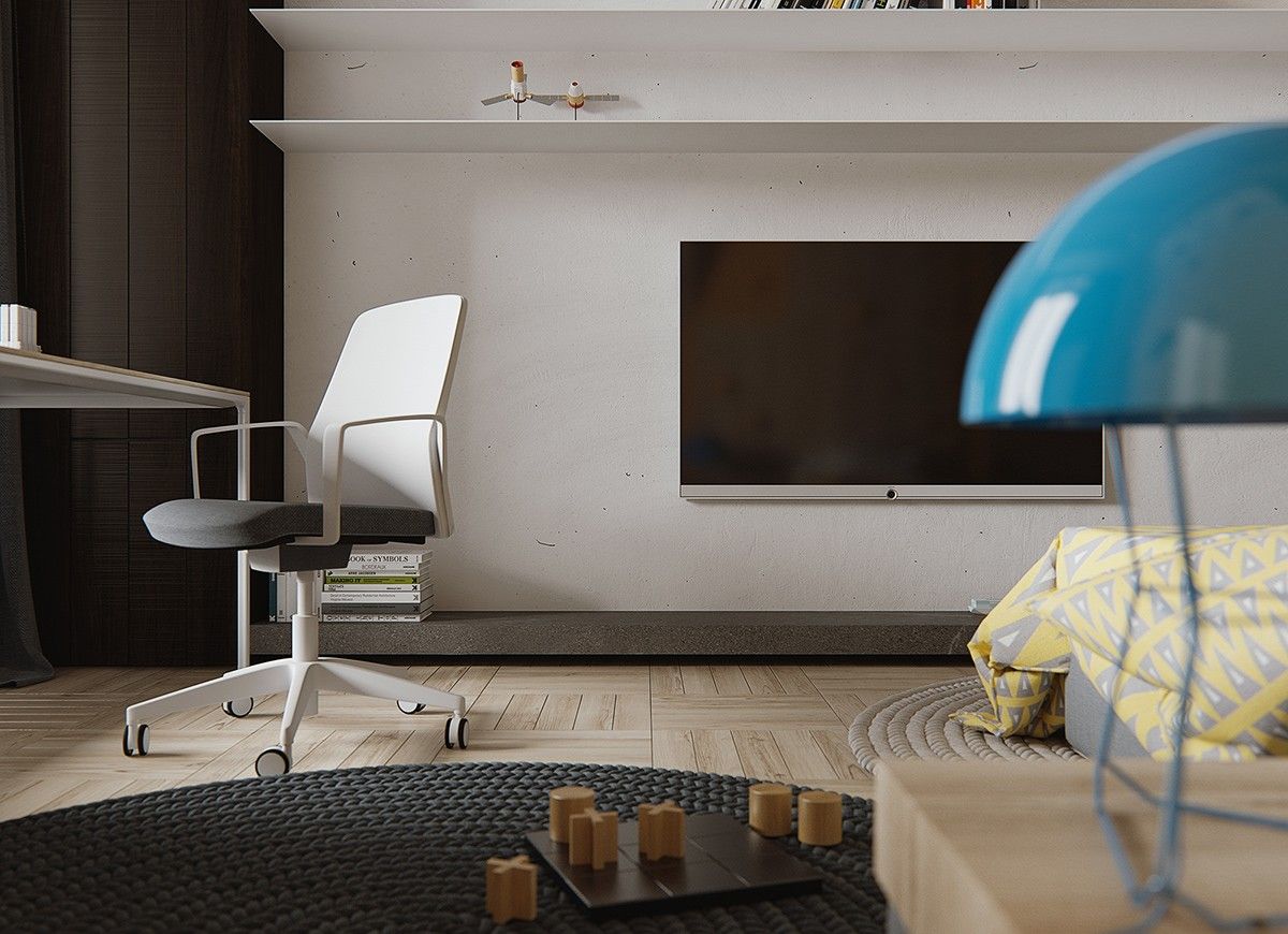 空间使用灰色和棕色色调的组合,营造出平静的氛围,当然,这些颜色有利于配合家具的选用。