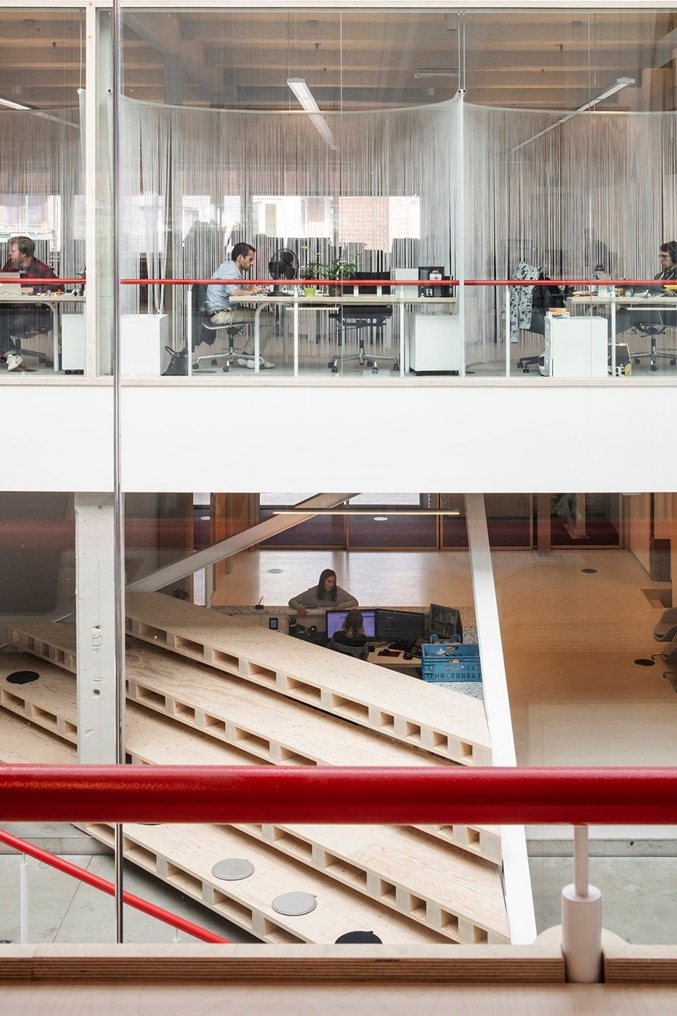 考虑到目前的经济状况,有效利用空间从而实现更高的容纳率是布局的重要前提。ZAmpone设计的"开放空间"建立在三个原则之上:动态、声学和日照。在"新的工作方式"中,人而不是空间在建筑中发生行为,也可以说是动态用户位于静态的建筑中。ZAmpone不仅实现了这种空间设计,还塑造了一个能够为项目提供资金的经济建造方案:BBDO清空多余的空间,使用公共接待处和公共餐厅。这也是动态原则的一部分。划分和界定噪声区是设计的第二个重要原则。在"开放工作空间"中,会议只允许在单元隔间中举行,从而控制内部声音。会面和洽谈在餐厅看台或围绕着交通管线进行。日照是第三个重要原则。研究发现员工在拥有自然光线和城市美丽景观视野的环境中能更好的工作。新工作区域围绕着窗户和中央布置。会议室内没有自然采光,从而达到控制使用时间的目的,避免了长时间的"占用"行为。