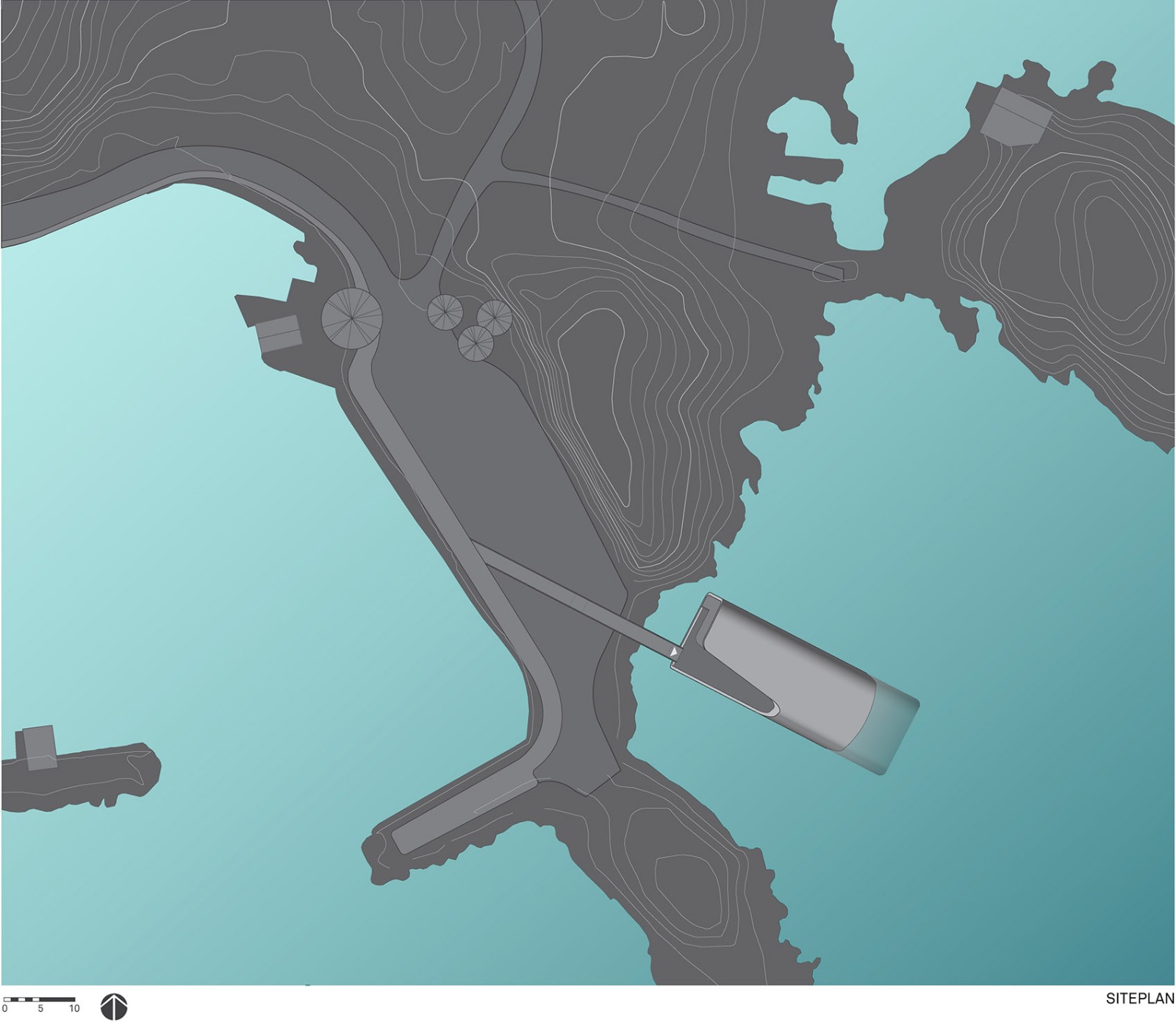 厚实的混凝土外墙直接倚靠在崎岖的海岸线上,能够承受不同级别的压力和冲击。