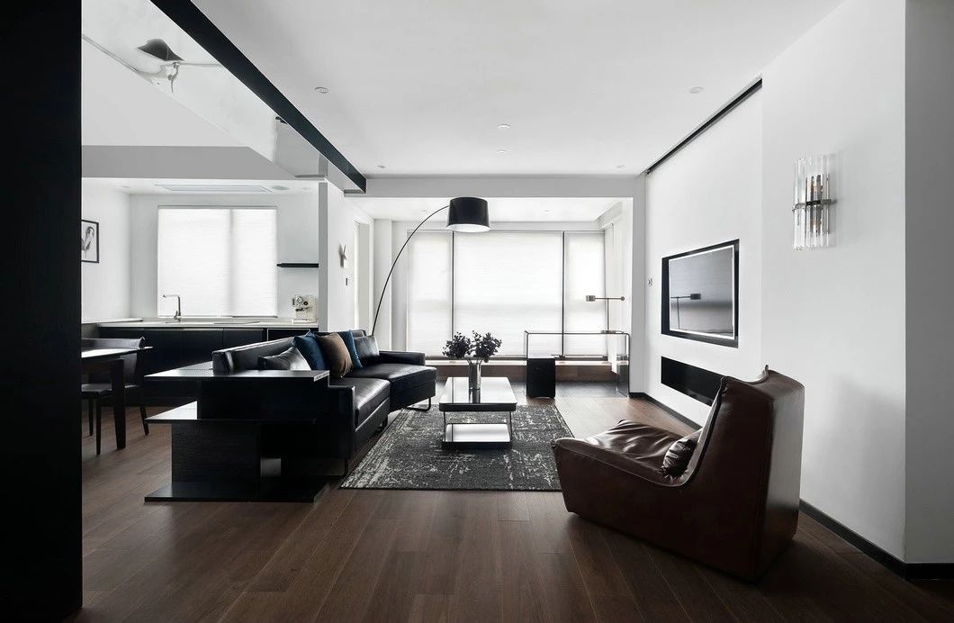 餐厨是收纳的核心区域之一,因为厨房属于"松散小件"的集中地。然后客厅区域是颜值和气场担当,当然是以美观大方为前提。而且客厅作为动线的交织区,也不会储藏大件的物品。不过小东西肯定会有,所以在沙发后面我放置了一个高700mL型边柜(定制产品)。用于放置临时存放的小件物品很实用的哦(来自客户反馈)。