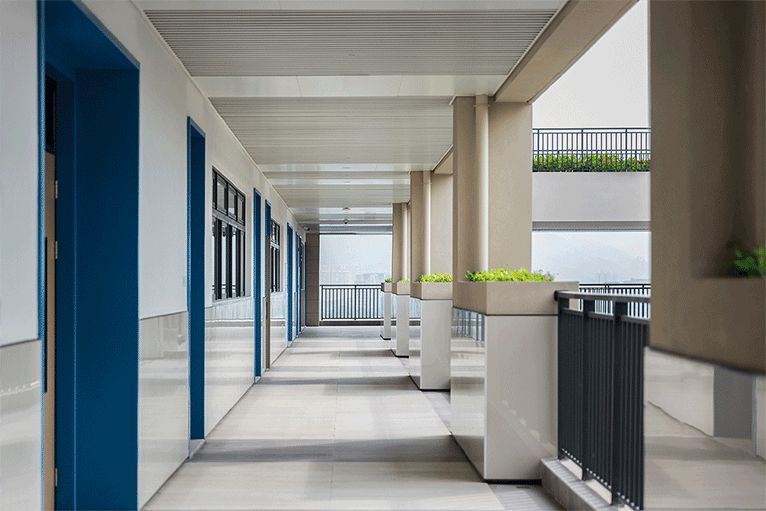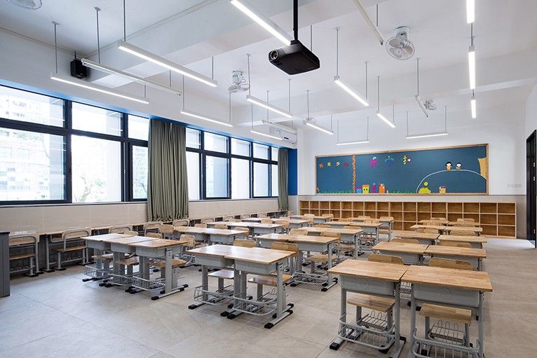 深圳市留仙学校位于南山西丽片区,2017年9月正式开学,学校建成后得到了教育系统普遍认可,已成为深圳市教育空间设计的典范。作为全市新起学校精装设计与规划的示范空间,无论是功能规划还是设计思维都必须体现一定的时代特色与前瞻性,立足于当下的同时,也能全面应对未来的发展需求。 在整体空间划分中,教学及辅助用房约为19436平米,生活服务用房约为6384平米,办公用房约为2480平米,在学校常规功能空间外,设有专业舞蹈室、剧场、音乐室等,空间上主张动静分区,手法上简洁实用,兼具科学性与人文色彩。