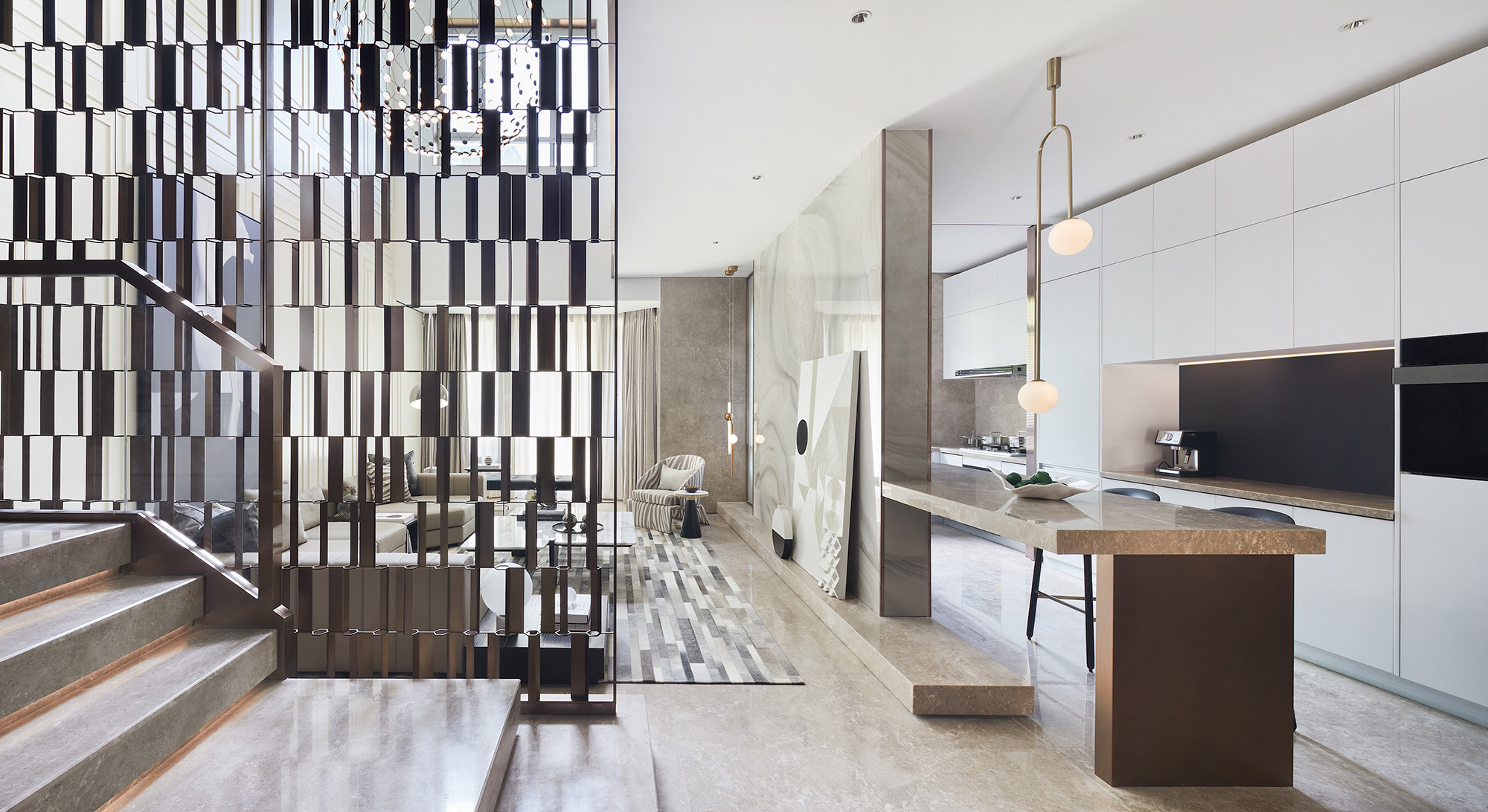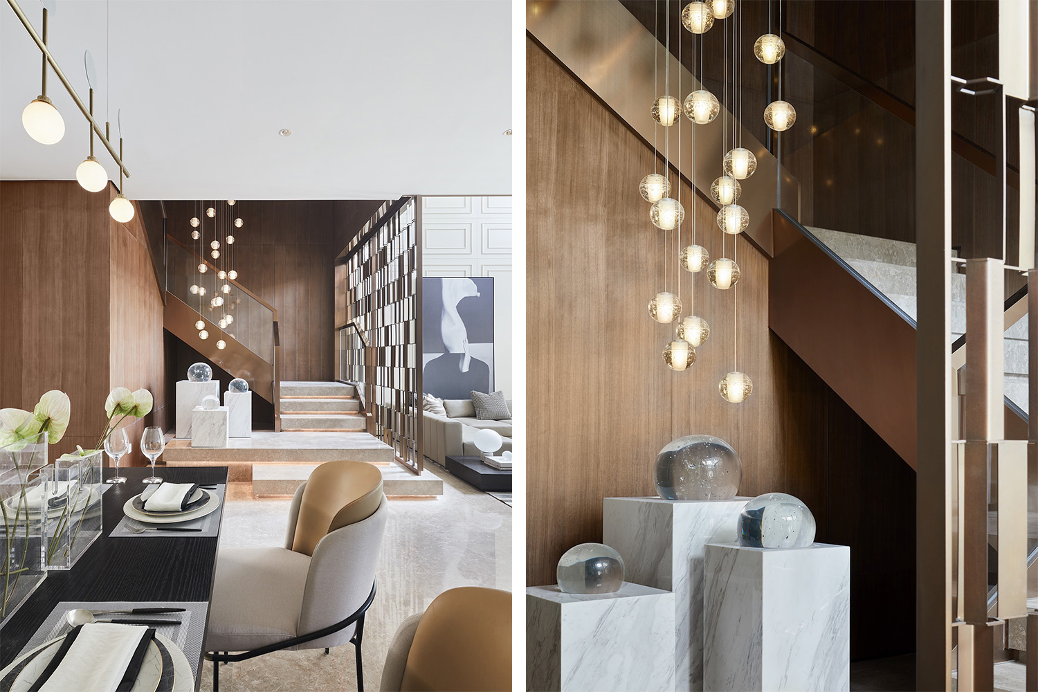 该别墅以现代摩登的格调呈现。在设计师一贯擅长的现代手法上,合宜引入摩登特征,并统筹驾驭二者的平衡。